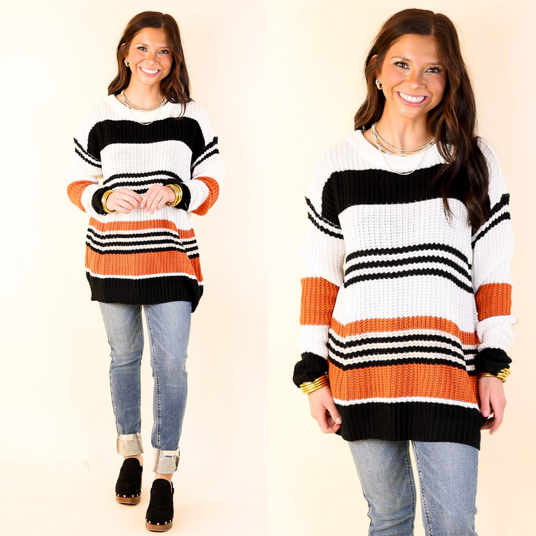 Harvest Honey Striped Cable Knit Sweater in Orange Mix