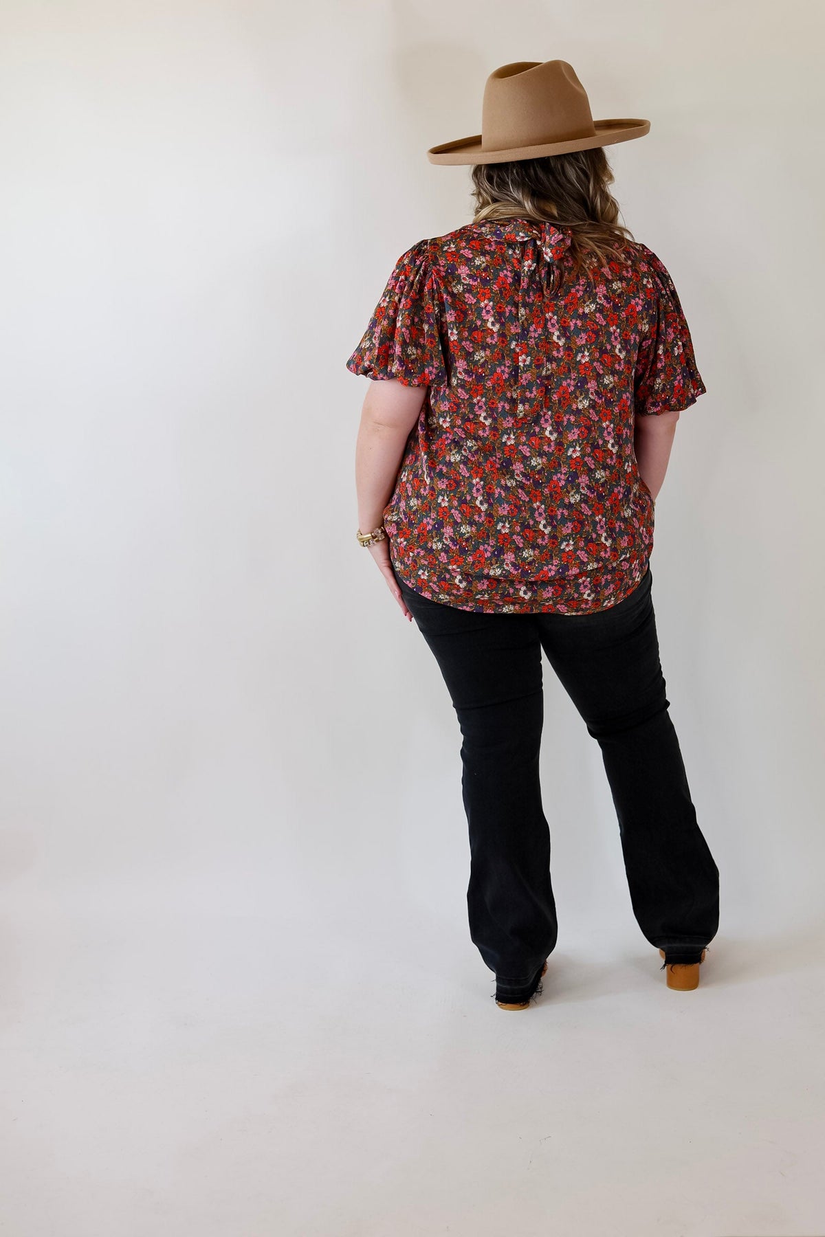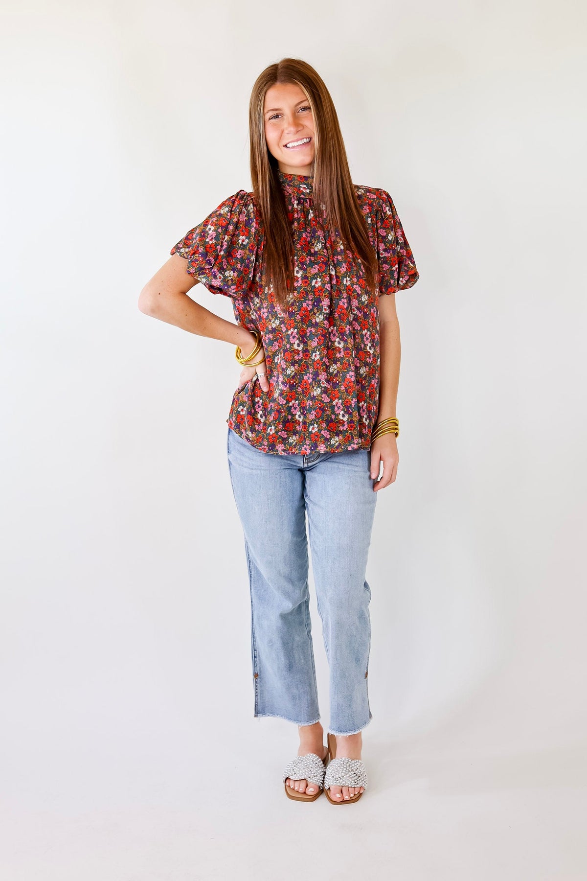 Last Chance Size Small | All Day Divine Mock Neck Floral Short Sleeve Top with Tie Back