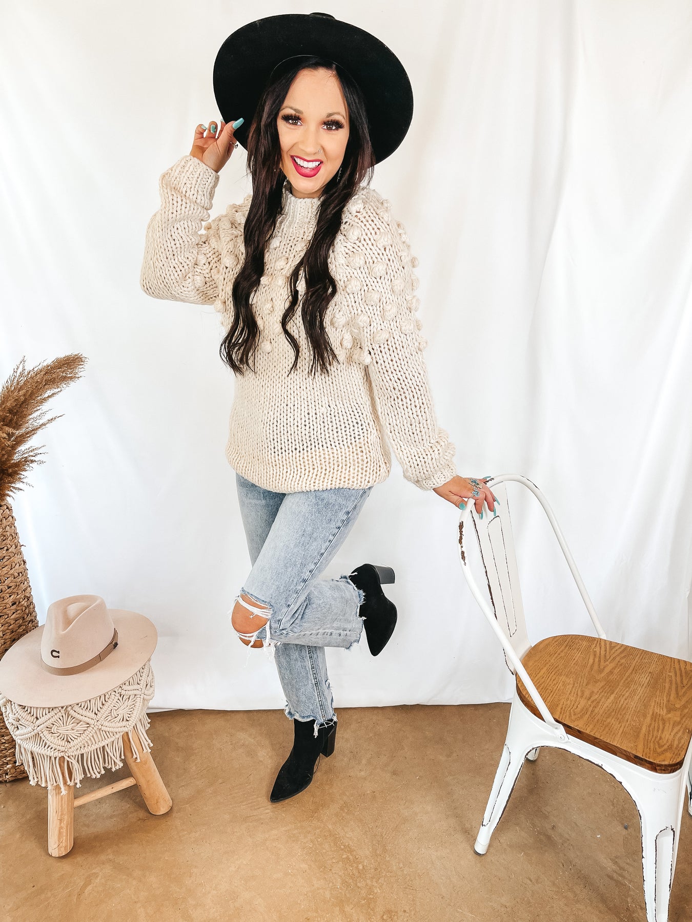Puff of Magic High Neck Sweater with Pom-Pom Upper in Ivory