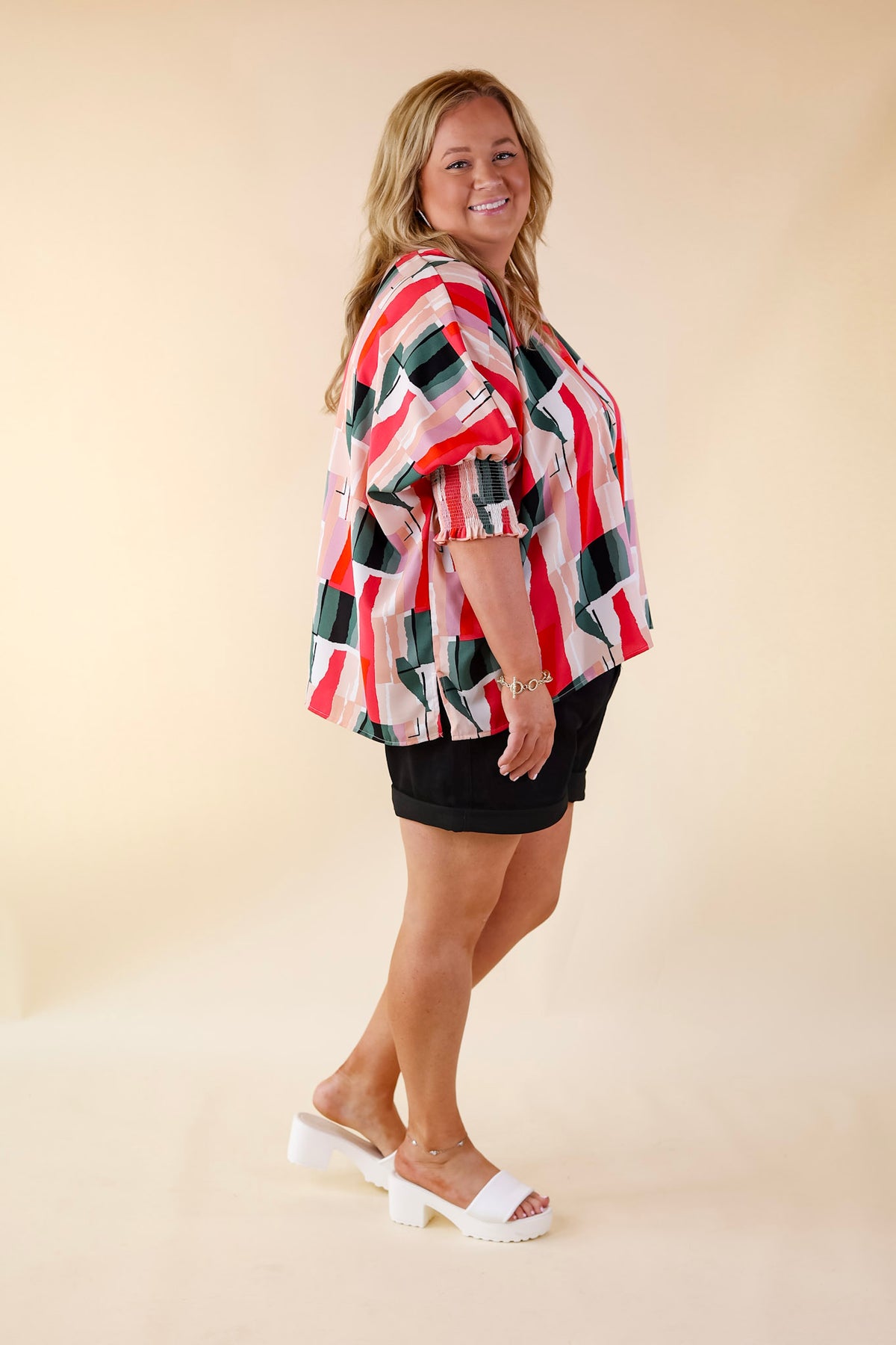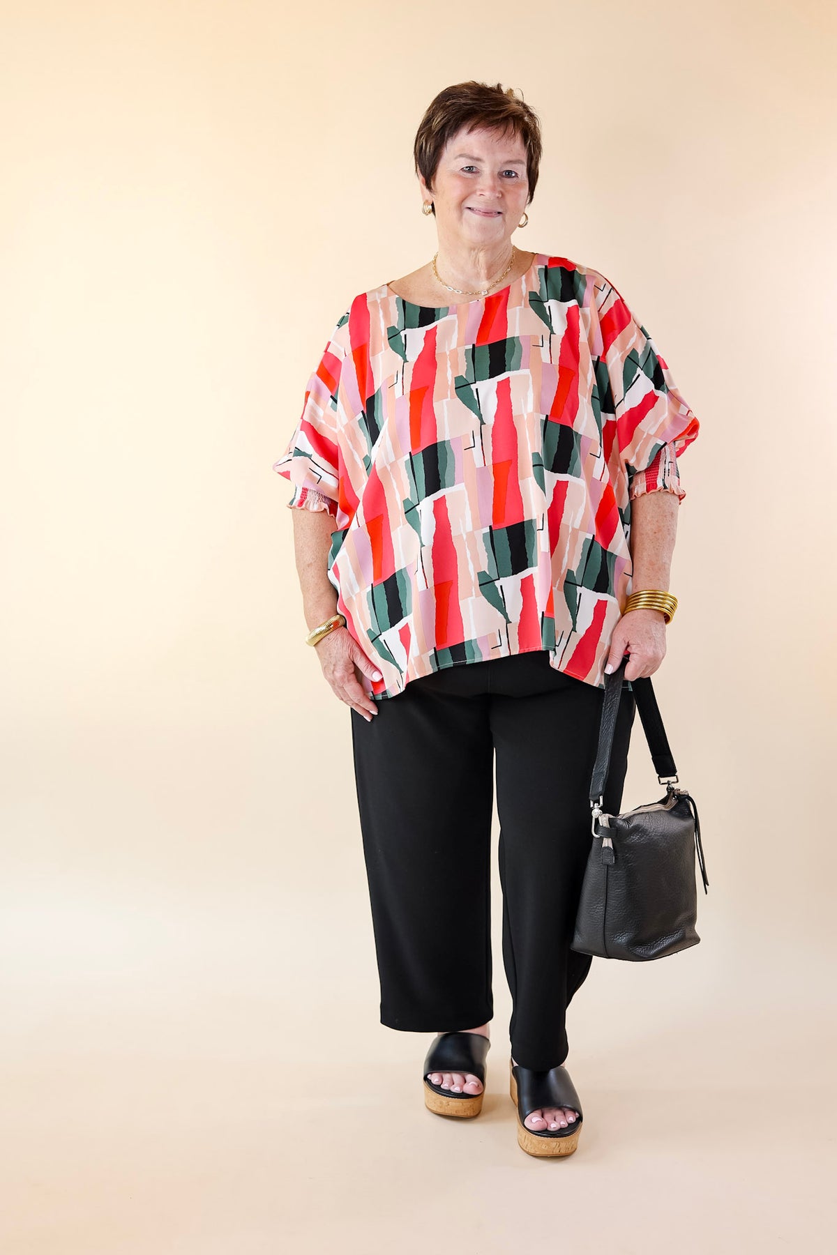 Elevate your style with our 'Museum Bound' top! This eye-catching piece features a half-sleeved, flowy design and a unique multicolor abstract pattern that's sure to turn heads. Perfect for sunny days, it's the statement piece your wardrobe needs.