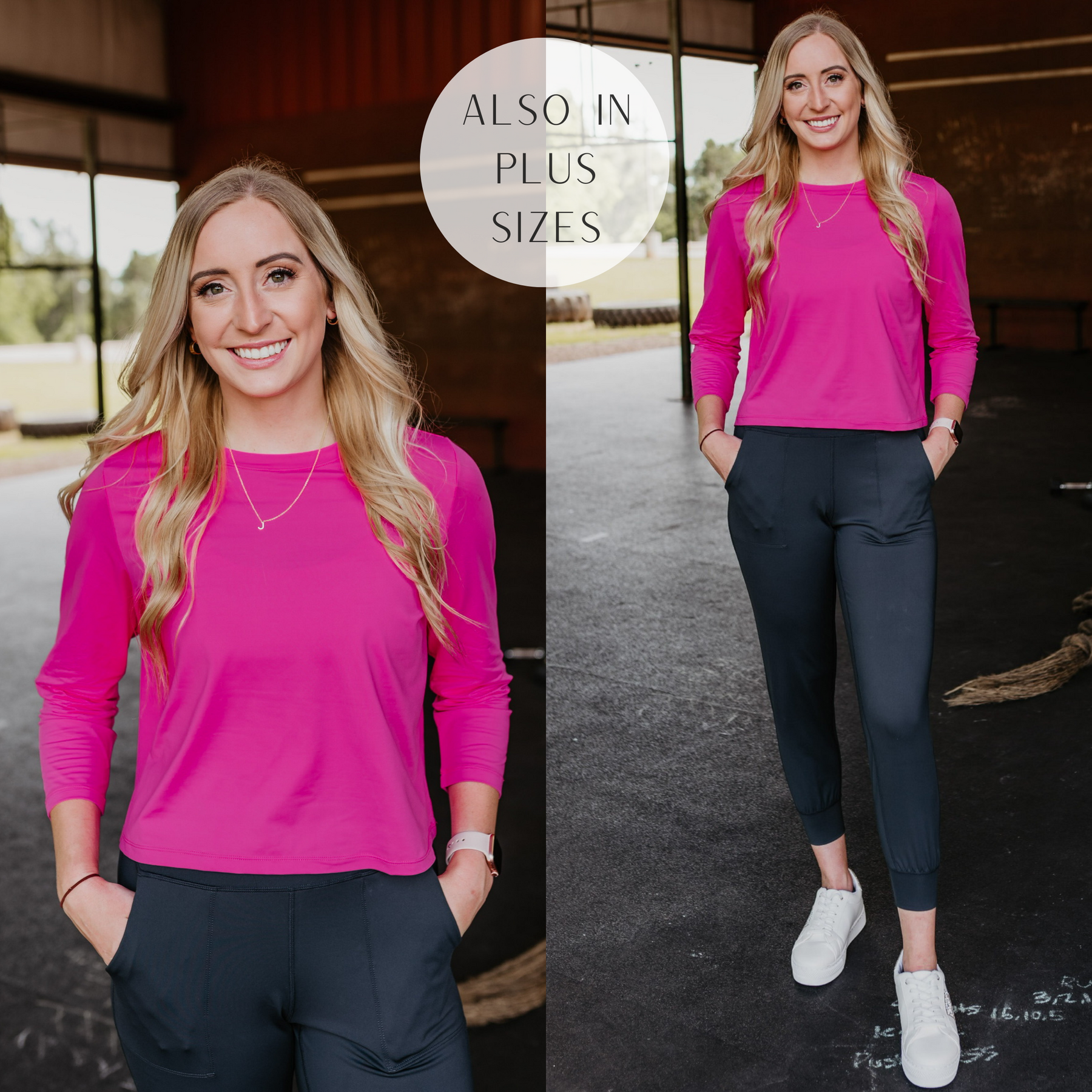 Get Moving Long Sleeve Cropped Top in Fuchsia
