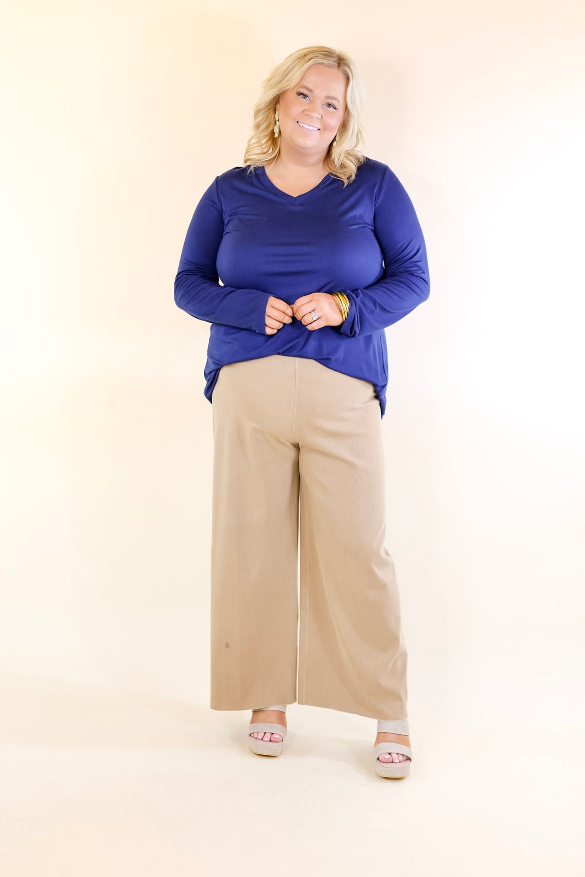 It's That Simple Solid V Neck Long Sleeve Tee in Navy Blue