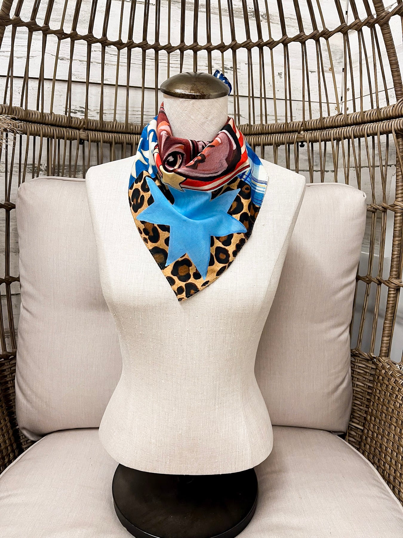 XOXO Art & Co | Star Horse Bandana Scarf in Brown, Blue and Red