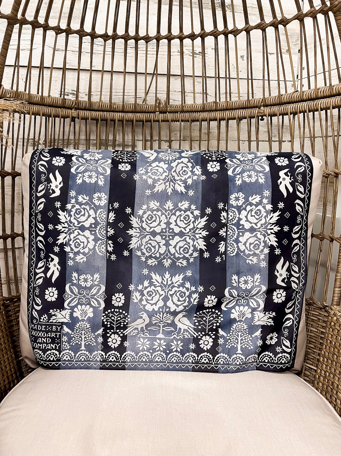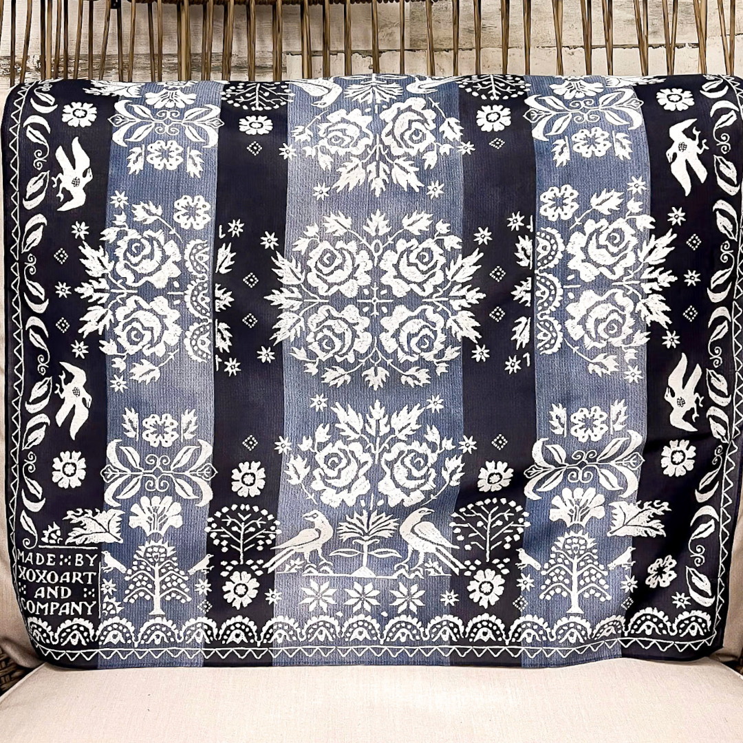 XOXO Art & Co | Woven Coverlet Shorty Wild Rag Scarf in Navy Blue