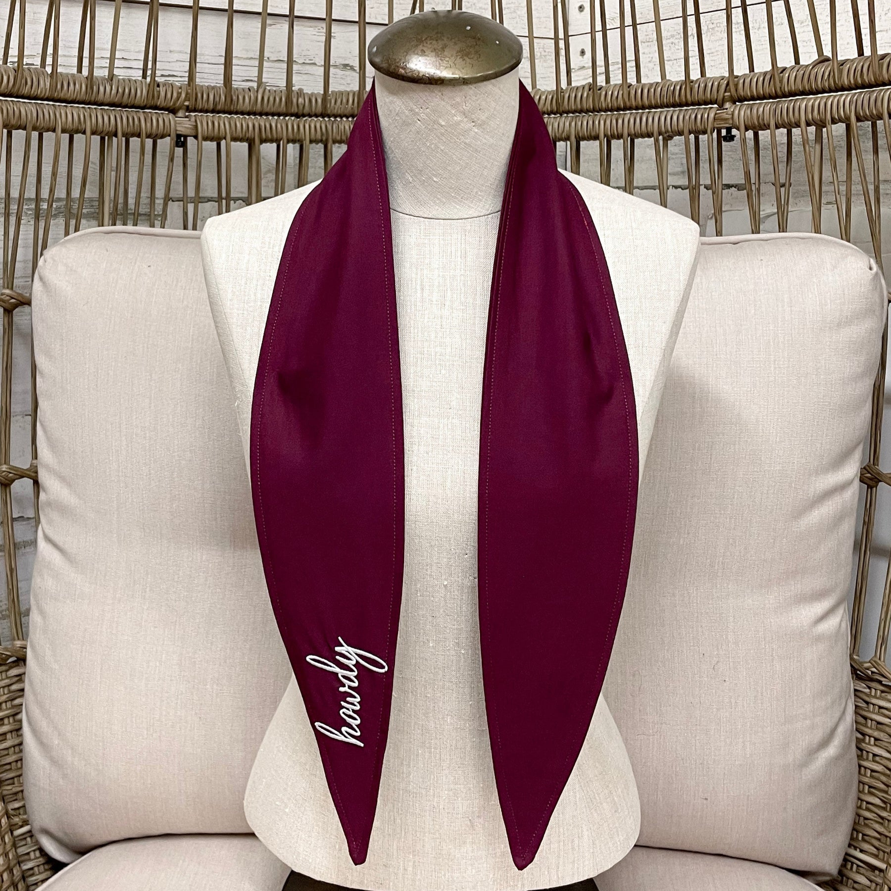 Howdy Embroidered Ascot Scarf in Maroon