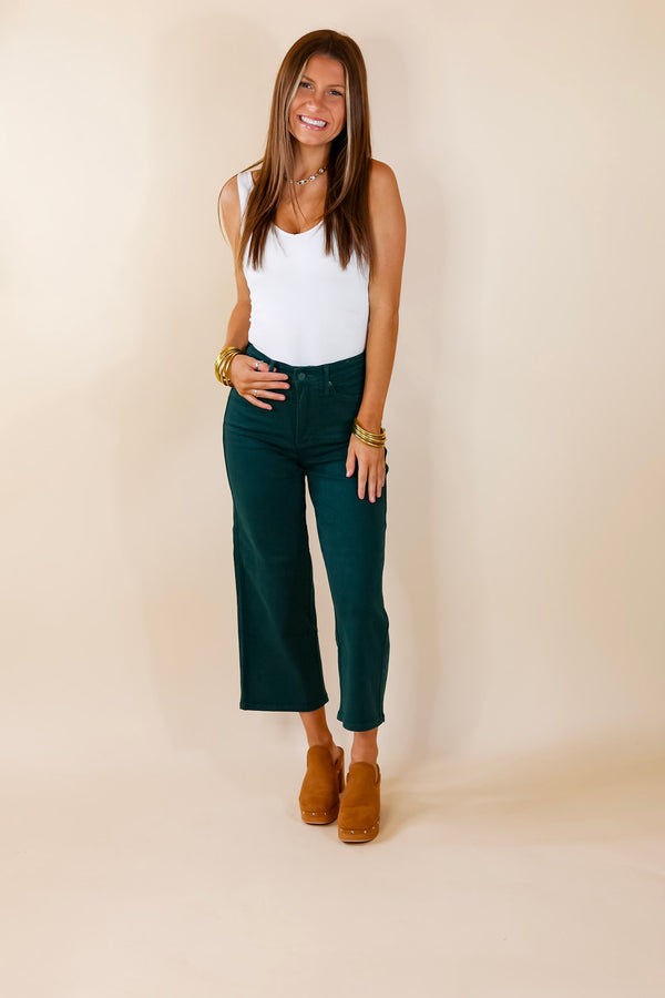 Judy Blue | Chic on the Move Cropped Wide Leg Utility with Front Patch Pocket Jean in Dark Wash