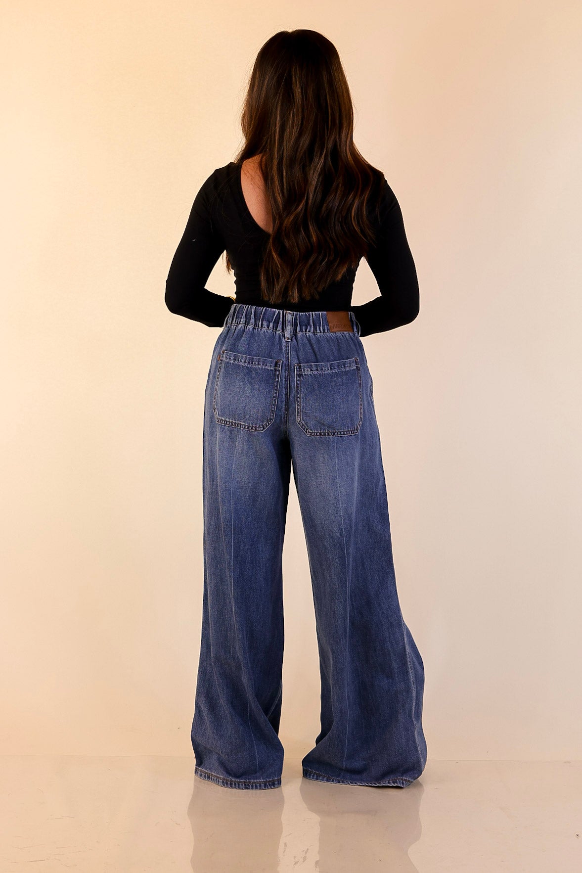 Judy Blue | Made to Move Wide Leg Palazzo Featherweight Elastic Waistband Jeans in Dark Wash