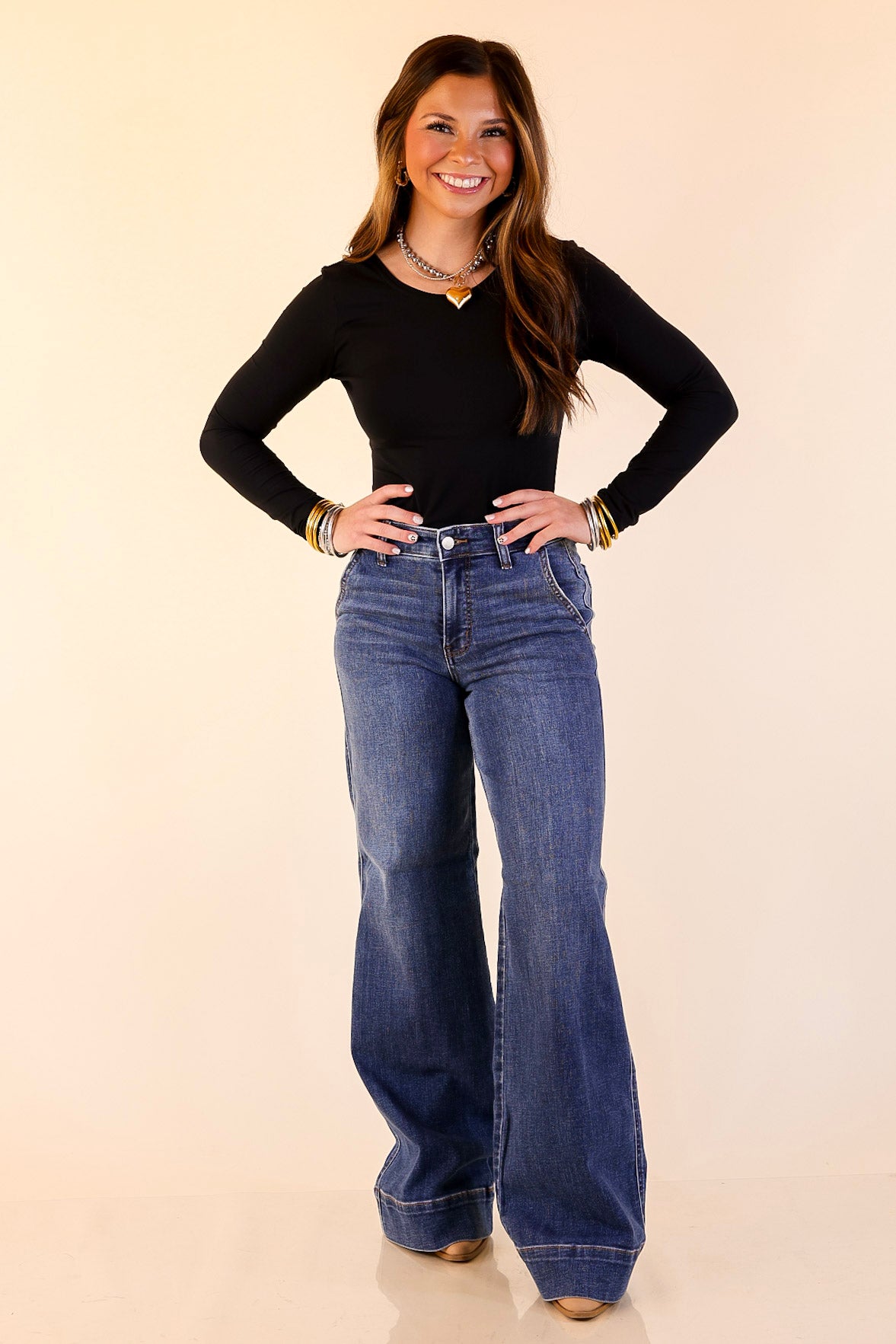 Judy Blue | Tailored Moves Retro Wide Leg Trouser Jean in Dark Wash