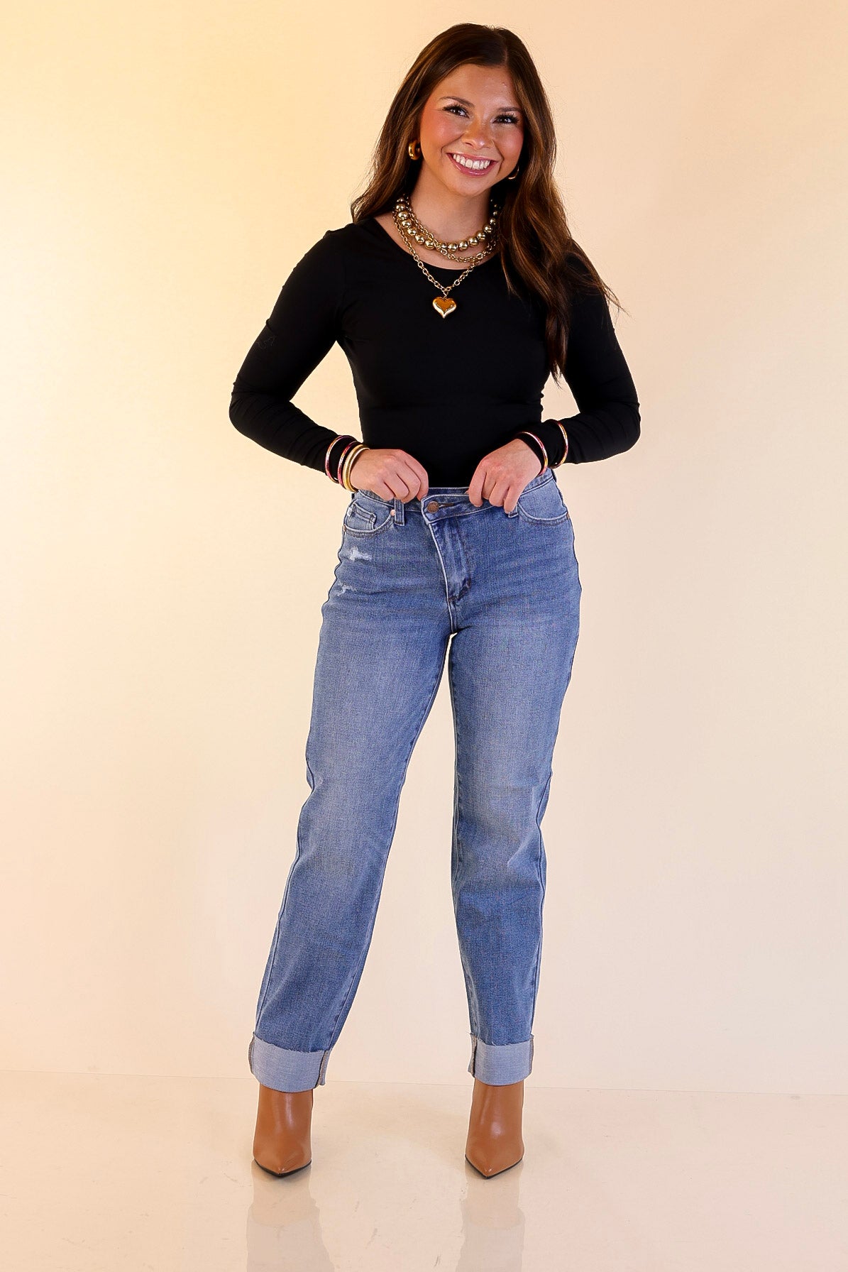 Judy Blue | The Cool Factor Single Cuff Boyfriend Denim Jeans in Medium Wash