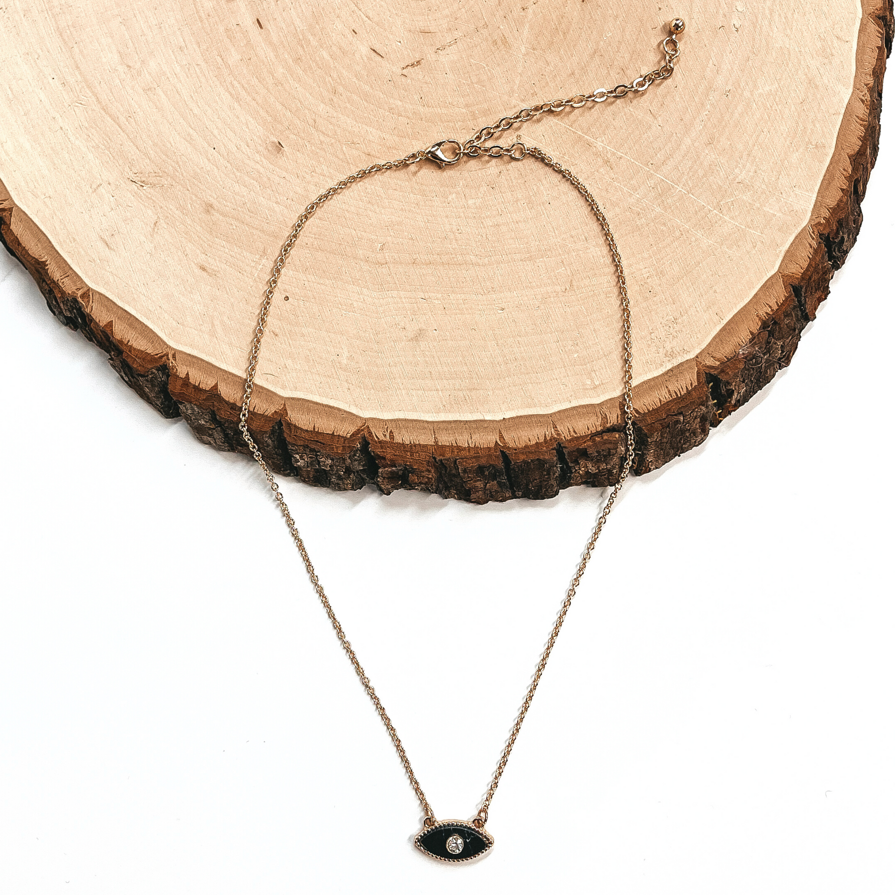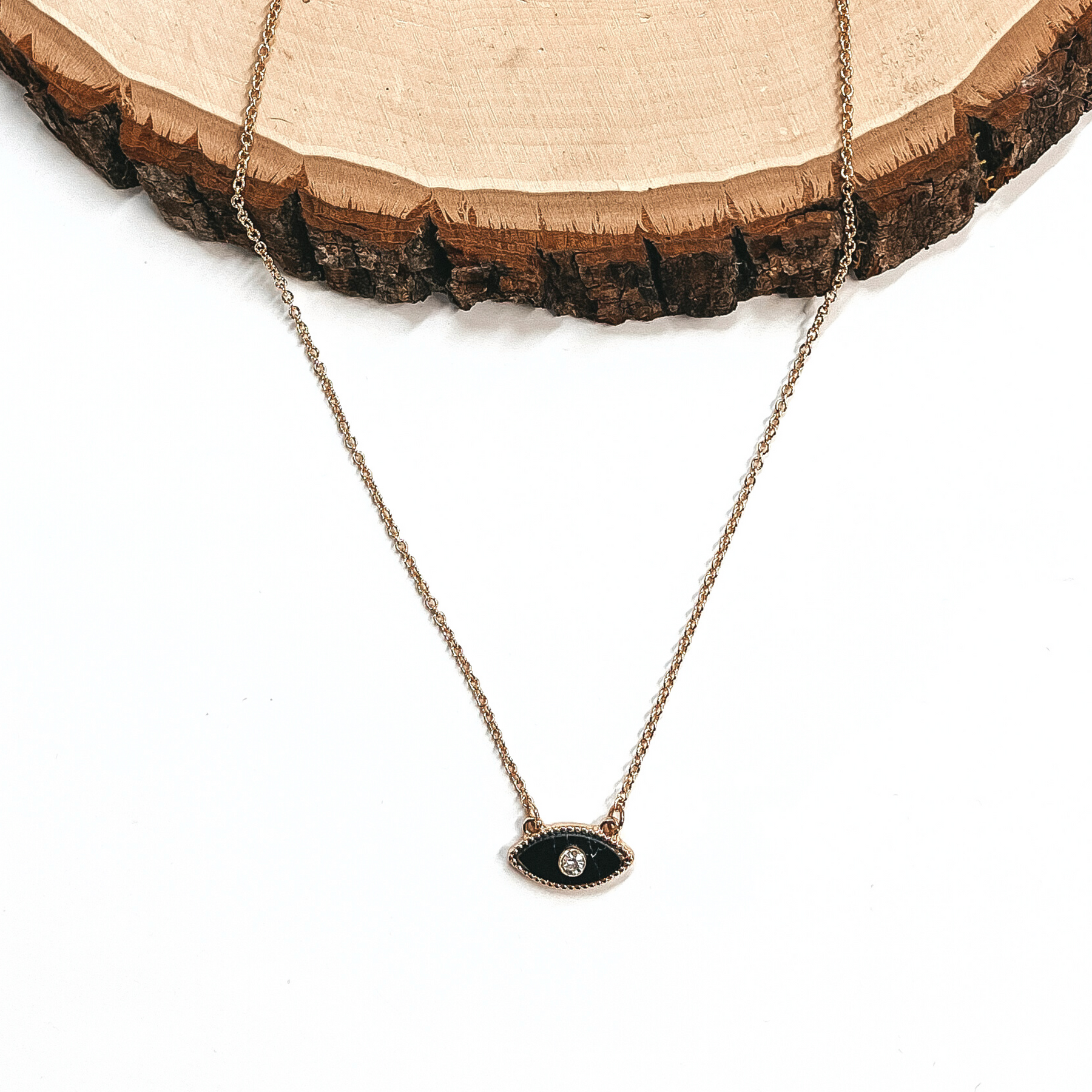 Gold Tone Necklace with Evil Eye Charm in Black with Clear Crystal