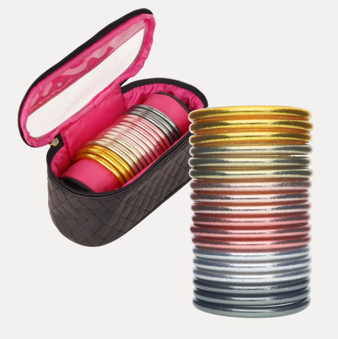 Introducing the latest Gift Bundle from BudhaGirl available in 4 sizes - a set of 12 All Weather Bangles in a sleek black carrying case! Perfect for all seasons, these bangles offer a touch of elegance while providing mindfulness and serenity. Give the gift of wellness and style with BudhaGirl.
