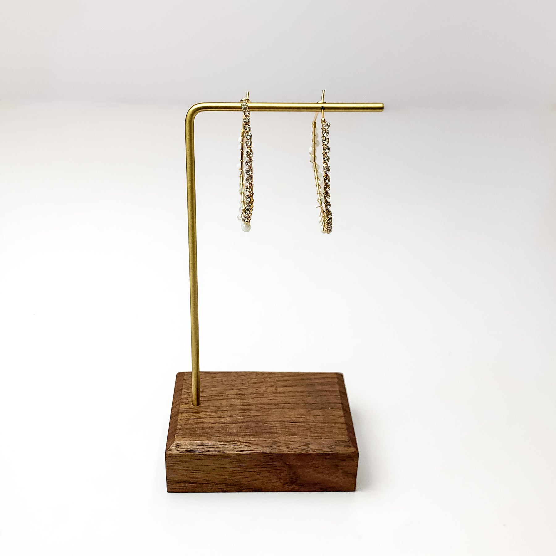 Gold Tone Hexagon Earrings Wrapped in Clear and Ivory Crystals