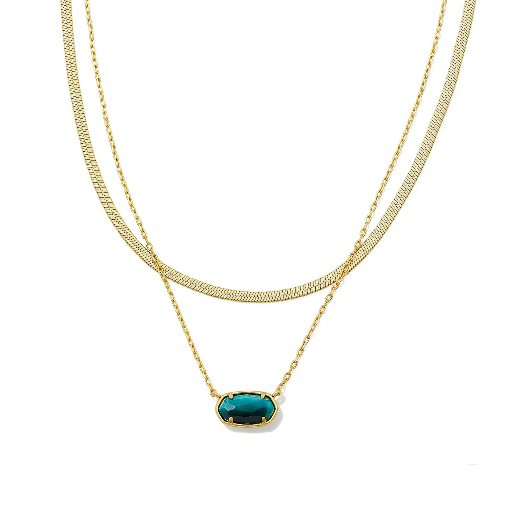 Kendra Scott | Grayson Herringbone Gold Multi Strand Necklace in Teal Tiger's Eye