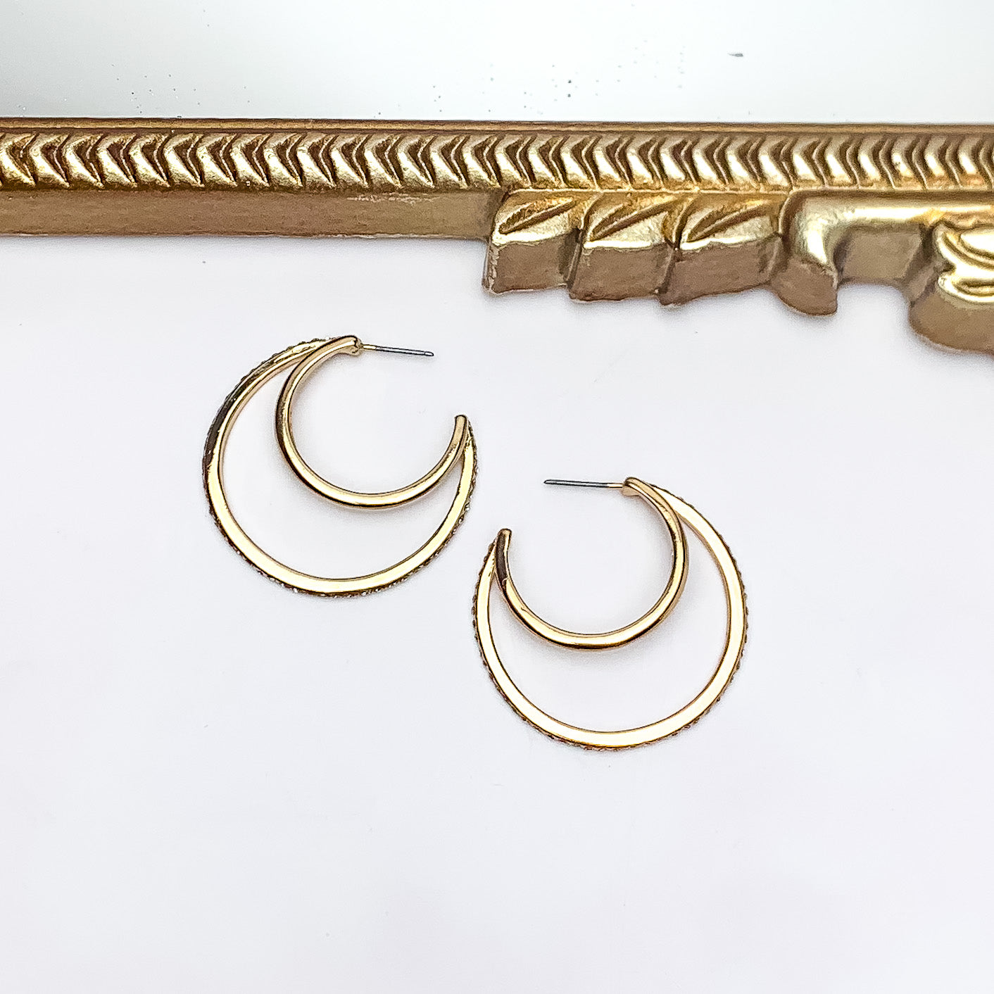 Midnight Hour Gold Tone Hoop Earrings With Clear Crystals - Giddy Up Glamour Boutique