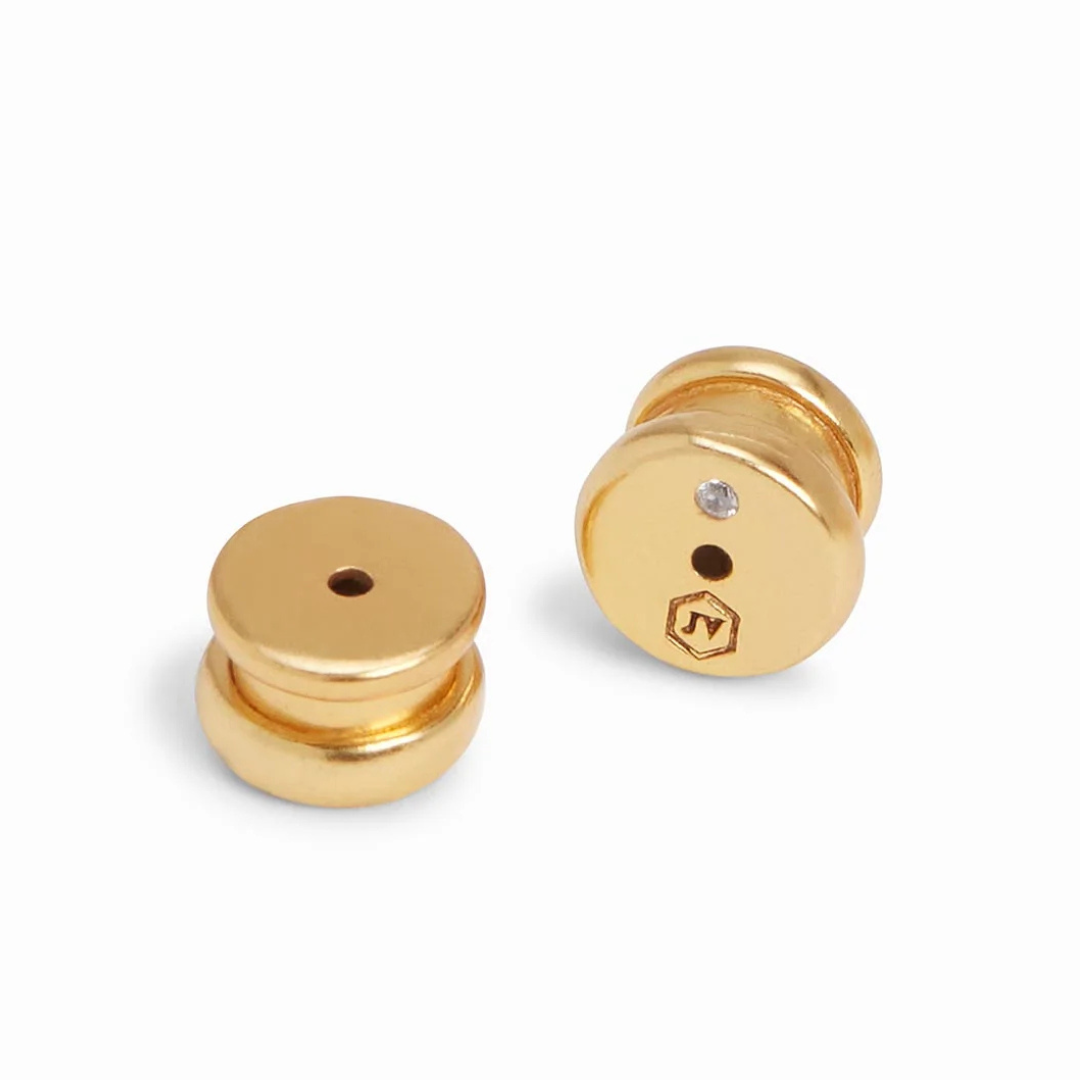 Our jewelry is hand set in 24k gold plate over nickel-free brass and sealed to prevent tarnish. Maintain the jewelry's beautiful luster by avoiding contact with lotion, perfume, makeup, or any harsh cleaning products. Remove your jewelry before showering, swimming, exercising, or washing your hands.