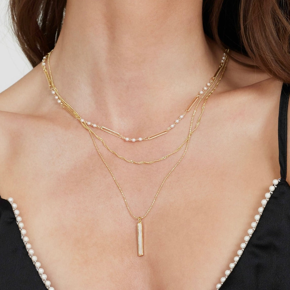 Embrace understated elegance with our Marina Necklace. Featuring long oval links spaced out with three dainty pearls in between, this necklace adds a touch of sophistication to any ensemble. Elevate your look with the timeless beauty of the Marina Necklace.