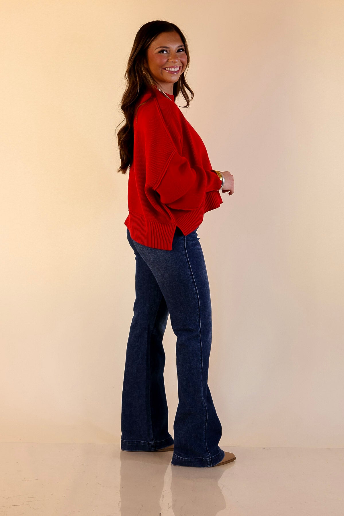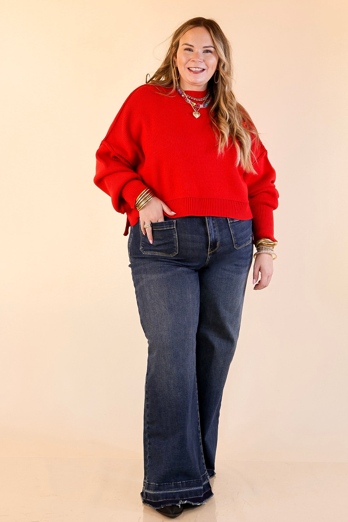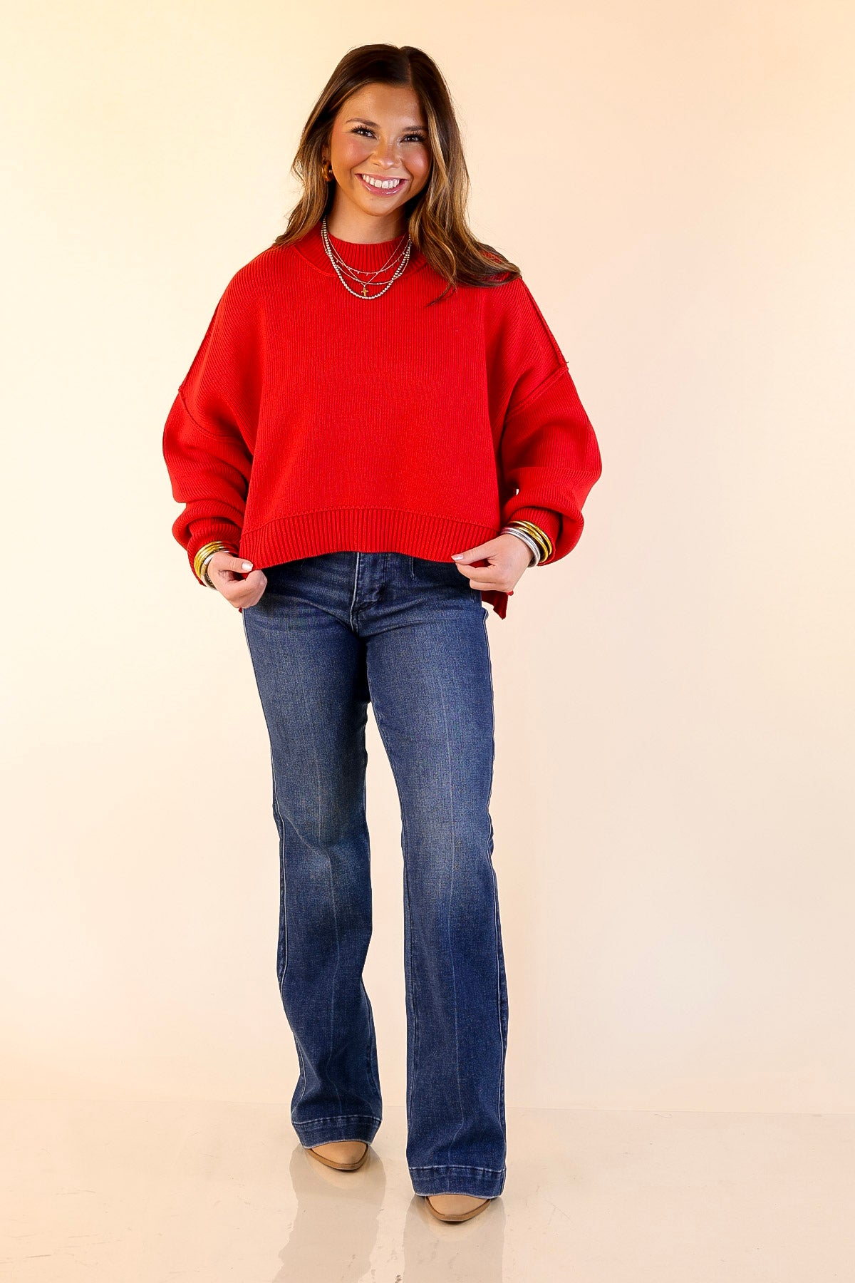 Fireside Fit Cropped Long Sleeve Mock Neck Sweater in Red