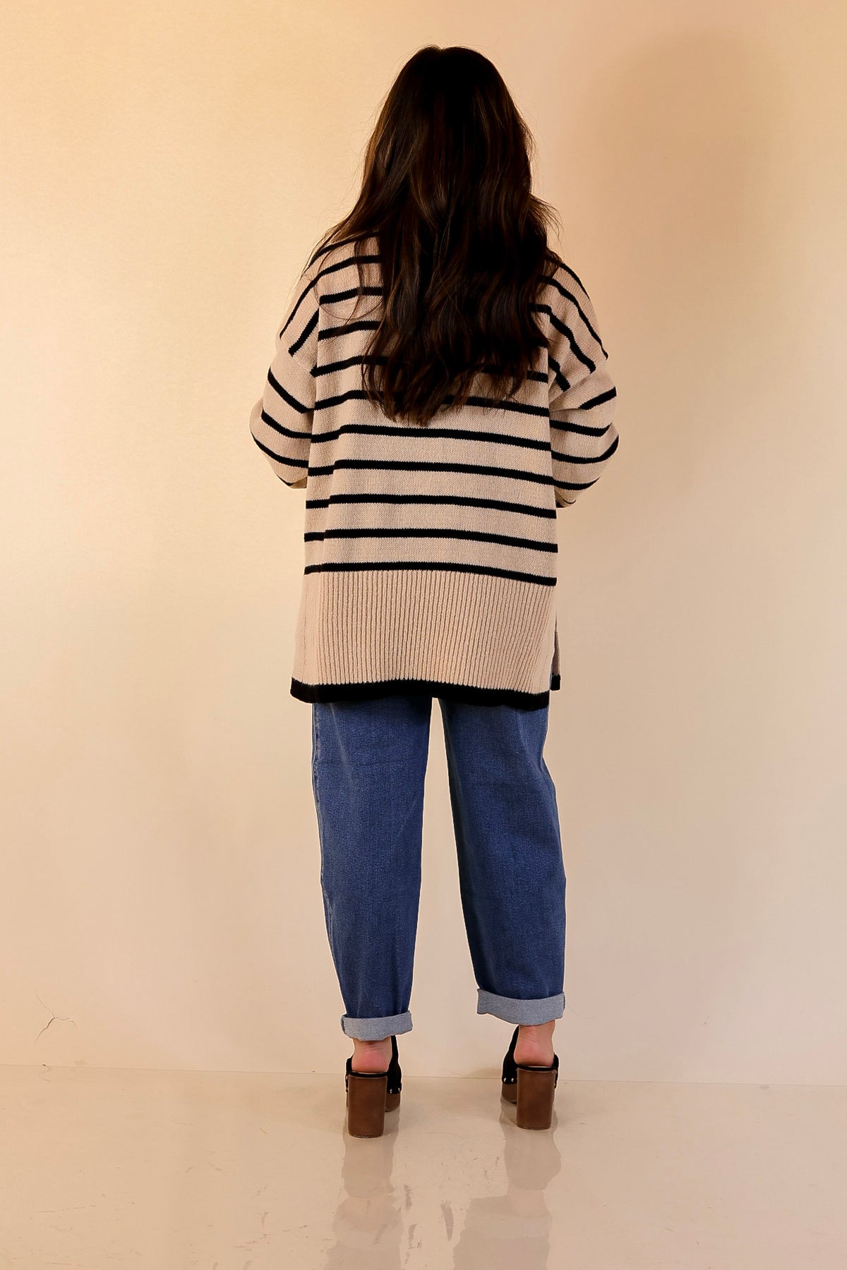 Mud Pie | Dunn Turtleneck Sweater with Black Stripes in Tan