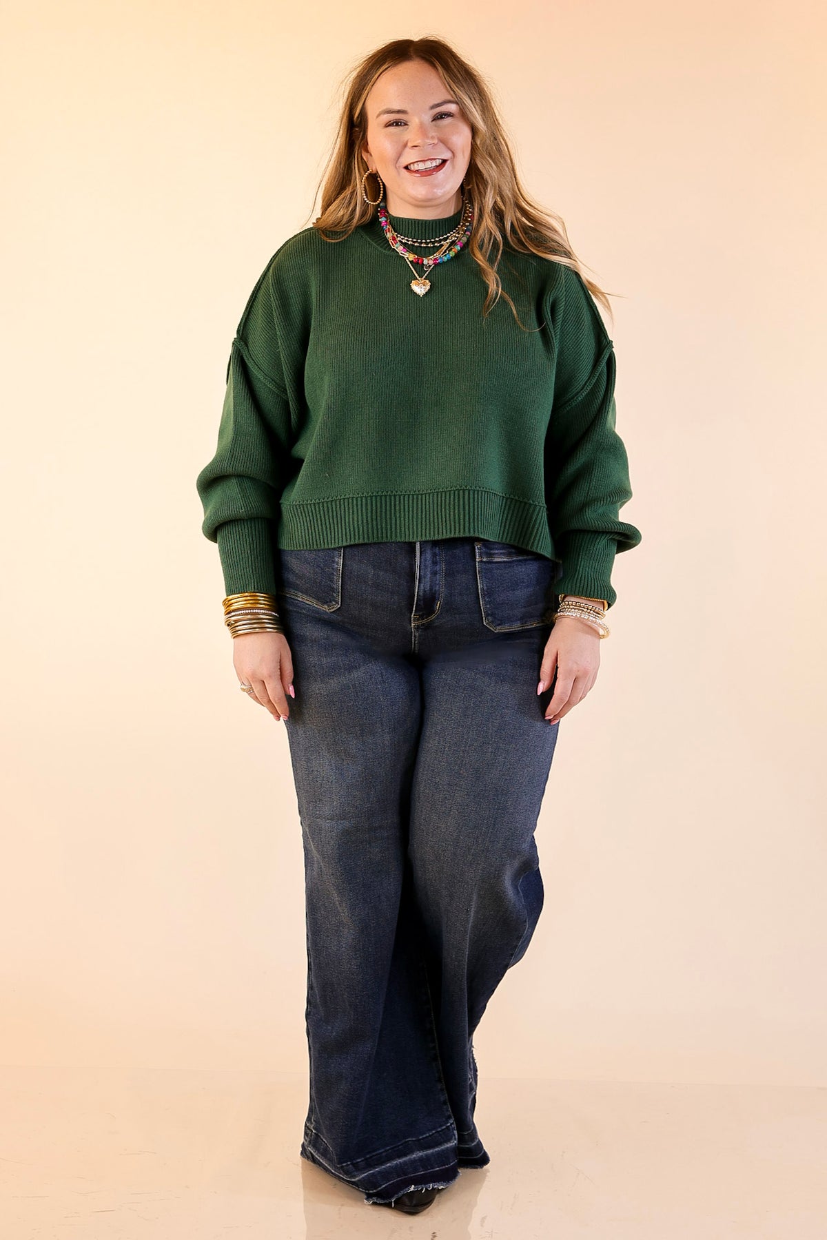 Fireside Fit Cropped Long Sleeve Mock Neck Sweater in Forest Green