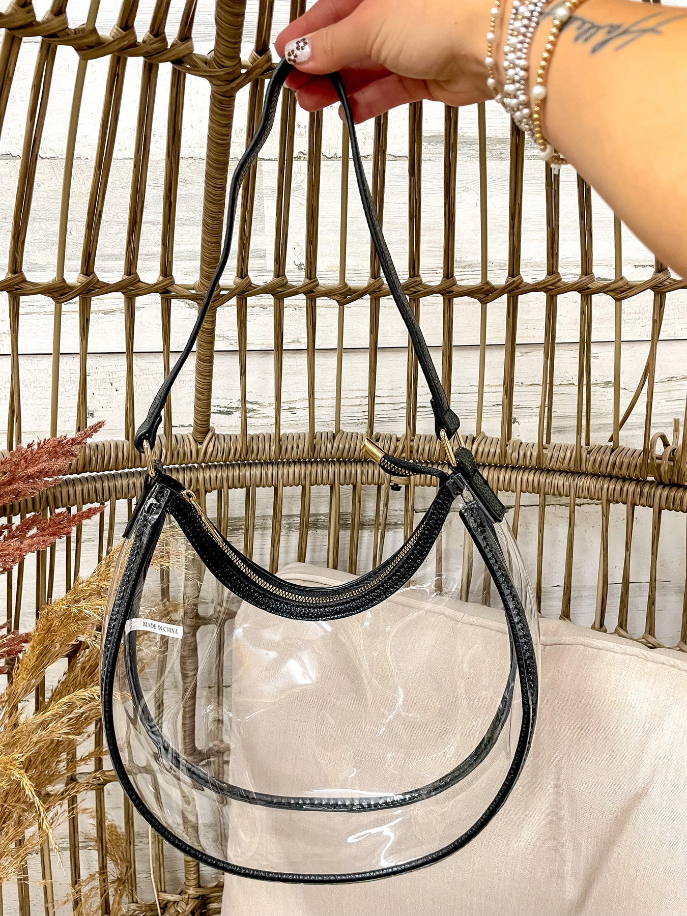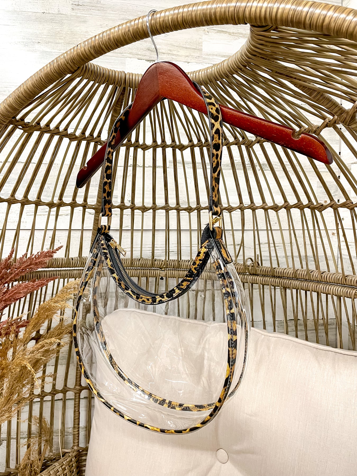 Get gameday or concert-ready with our Clearly Cute Shoulder Bag — trendy, functional, and stadium-approved! ✨ The curved moon shape and bold trim make it stylish enough for everyday wear while keeping you compliant at events. Choose from black, leopard, or gold trim for a look that’s totally you.