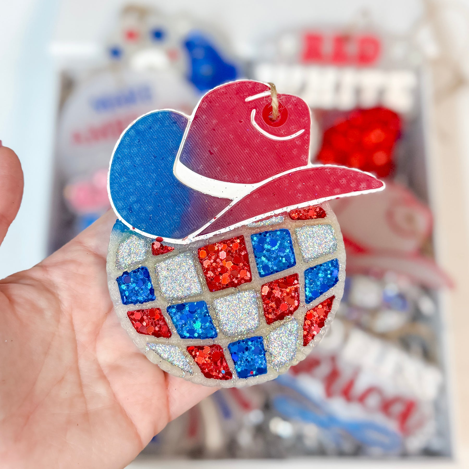 Red White & Boogie Cowgirl Disco Ball Freshie in Americana