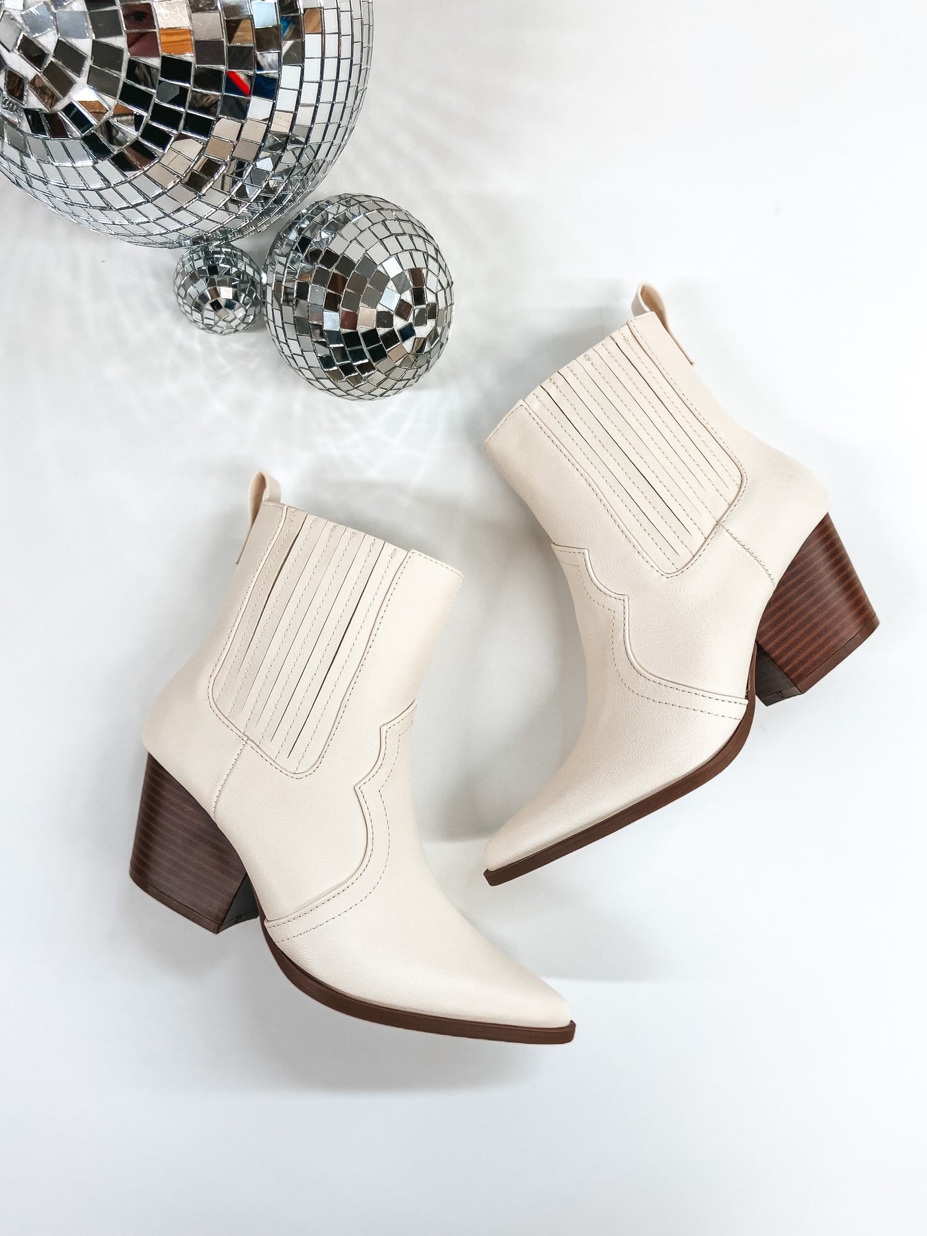 Strutin' Through Sedona Western Heeled Booties in Ivory