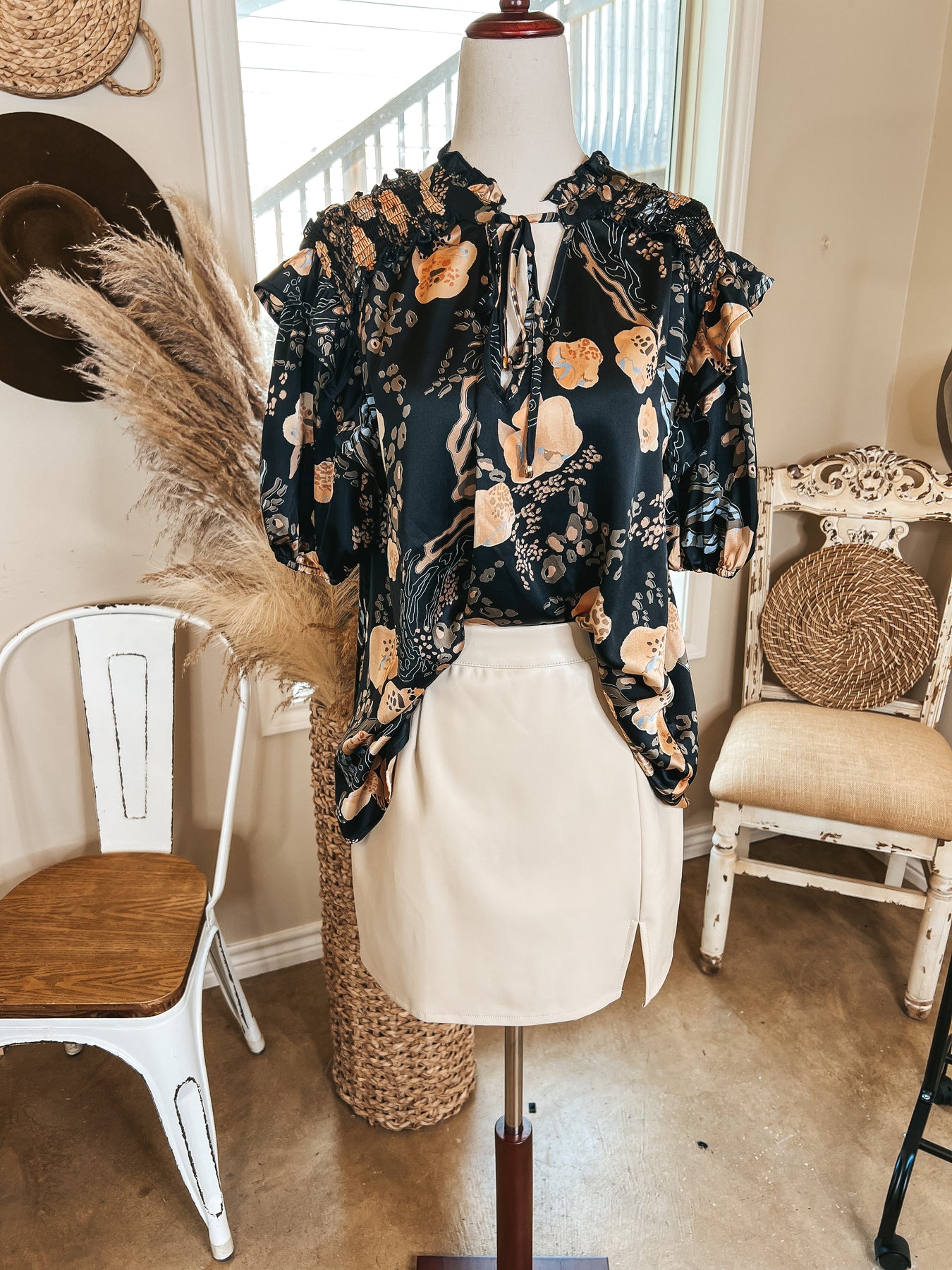 This new skirt is all the buzz! It includes a zip up back, a side slit on the left side, and a cute faux leather material. Pair this with a fun blouse and you'll be set for every occasion of the season!