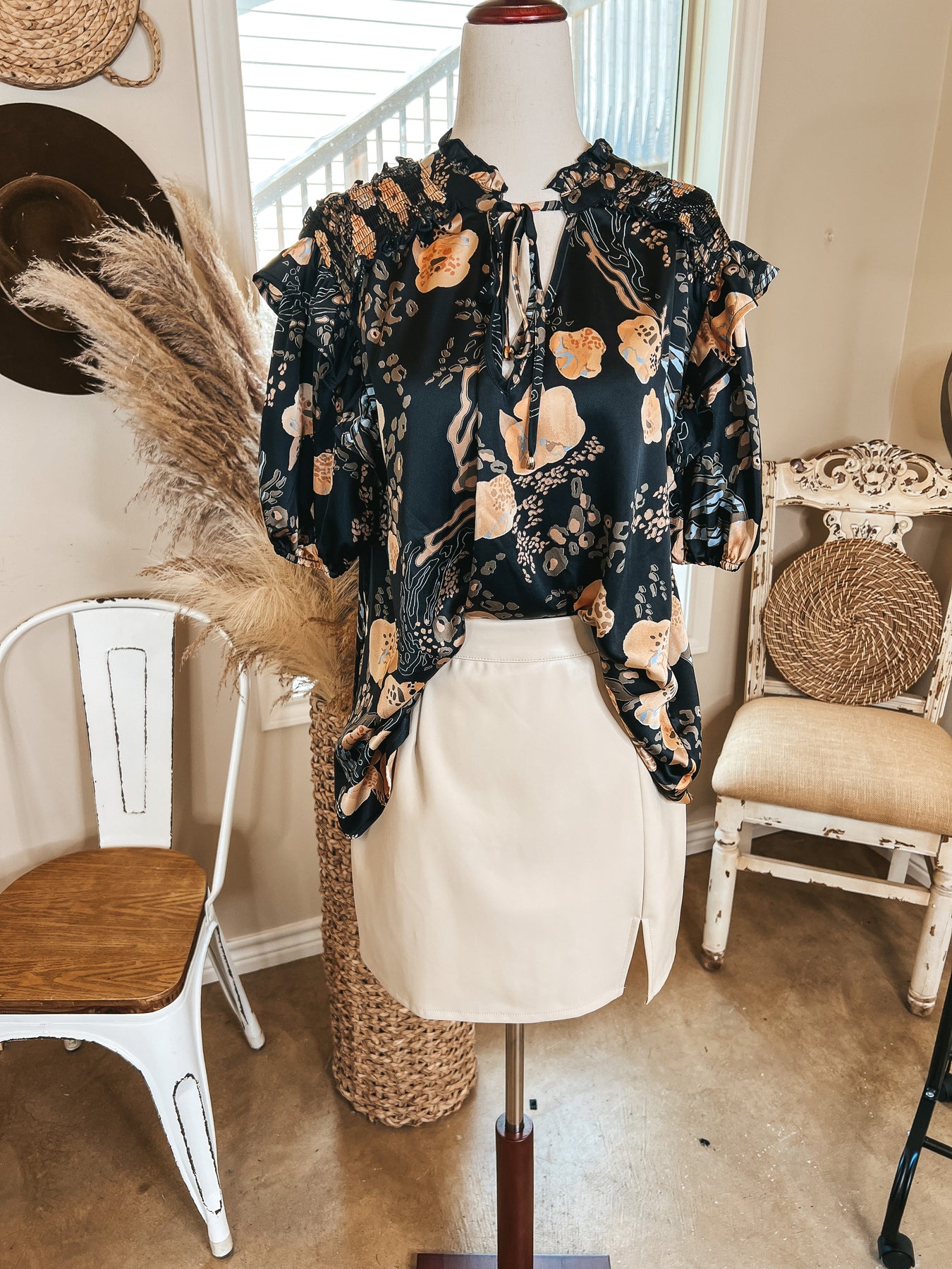 All the Buzz Faux Leather Side Slit Mini Skirt in Cream