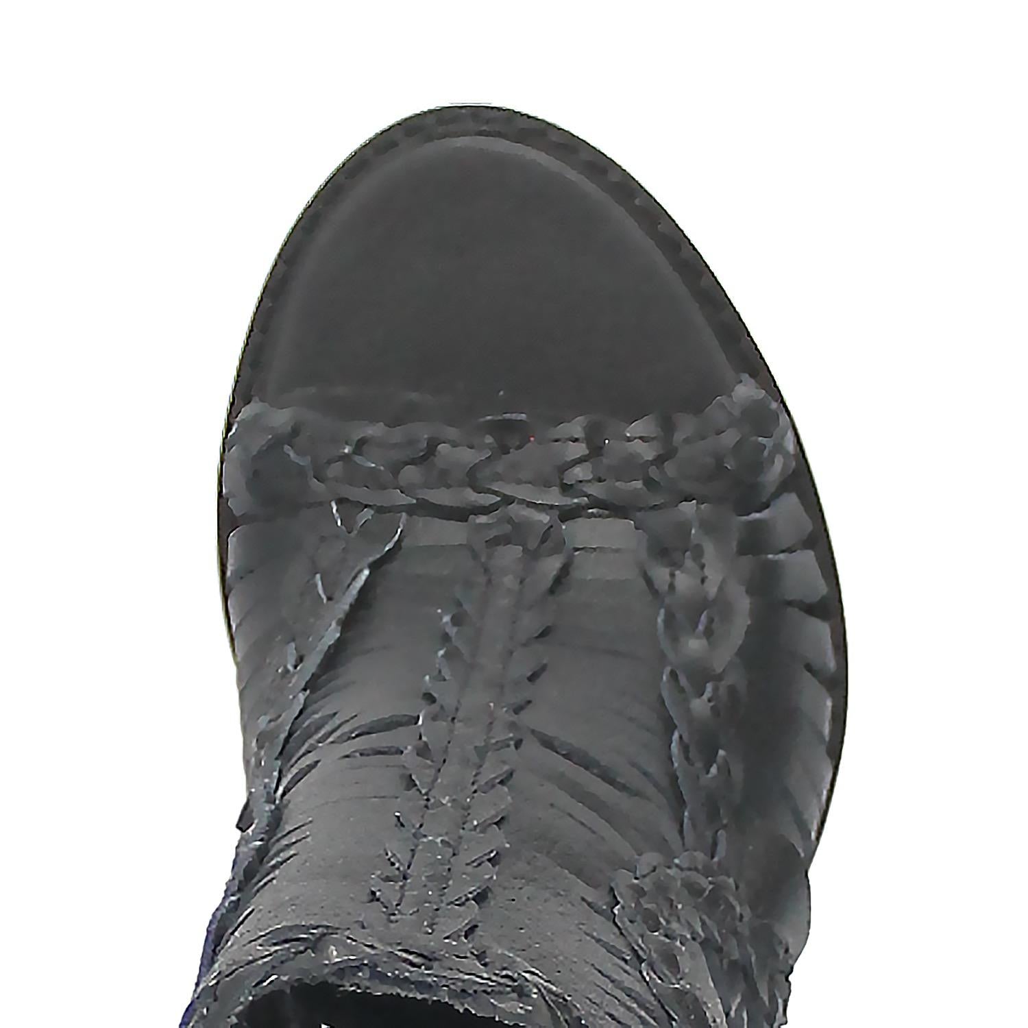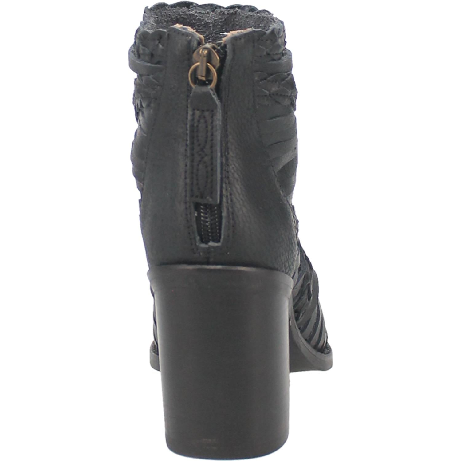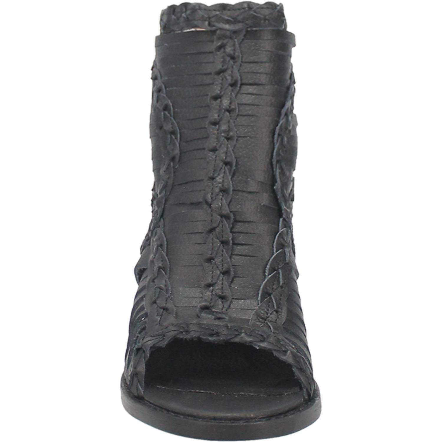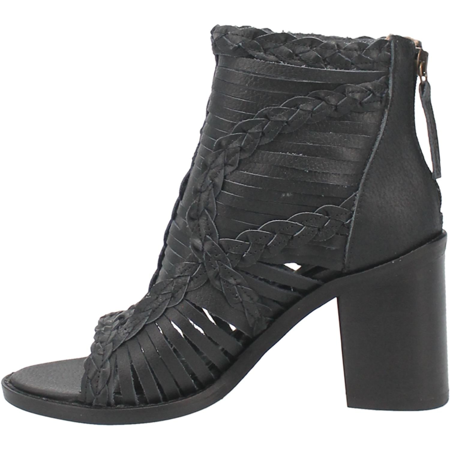 Wrap your foot in soft leather strips from toe to ankle, accented by woven braid overlays. The Dingo1969 Jeezy features a chunky heel, back zipper and open toe. Just what your closet is missing.