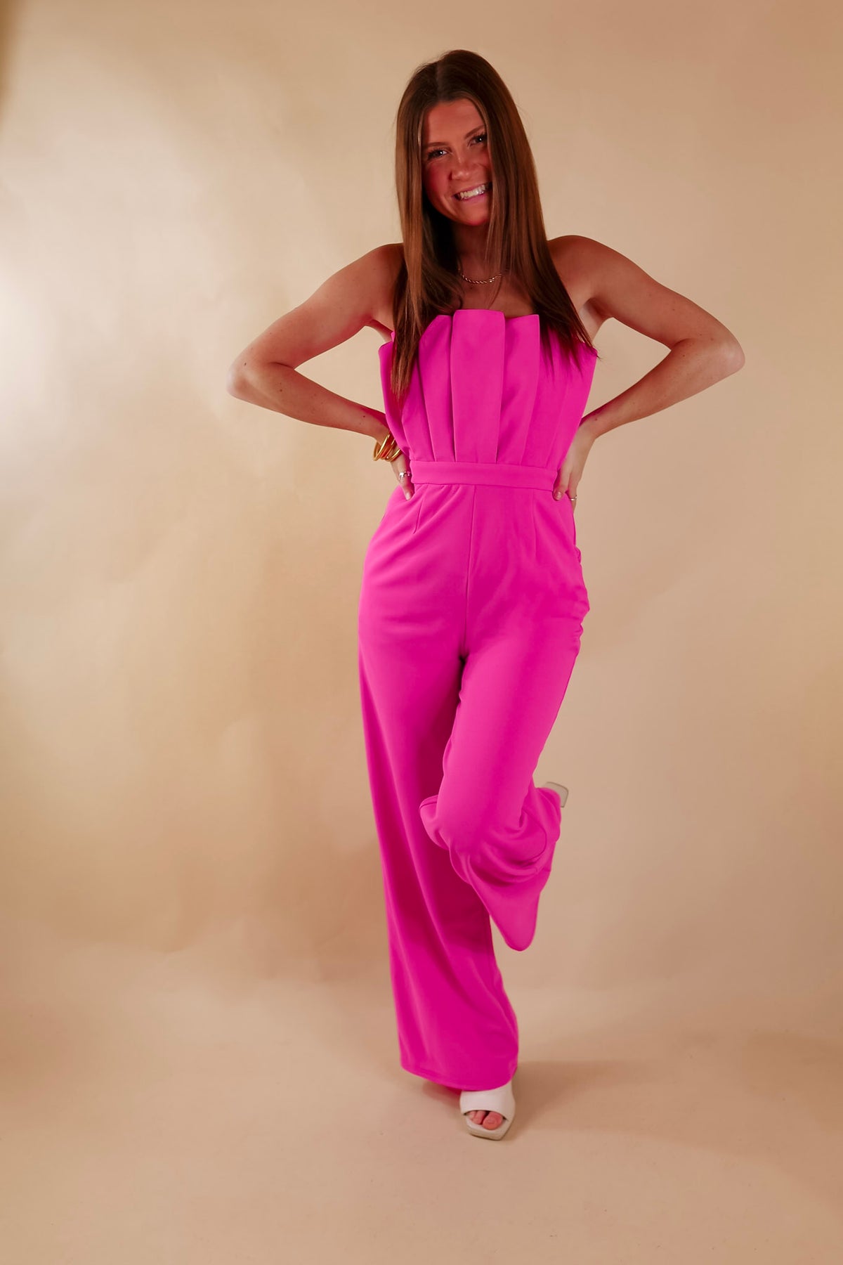 Do It With Pizazz Strapless Jumpsuit in Hot Pink