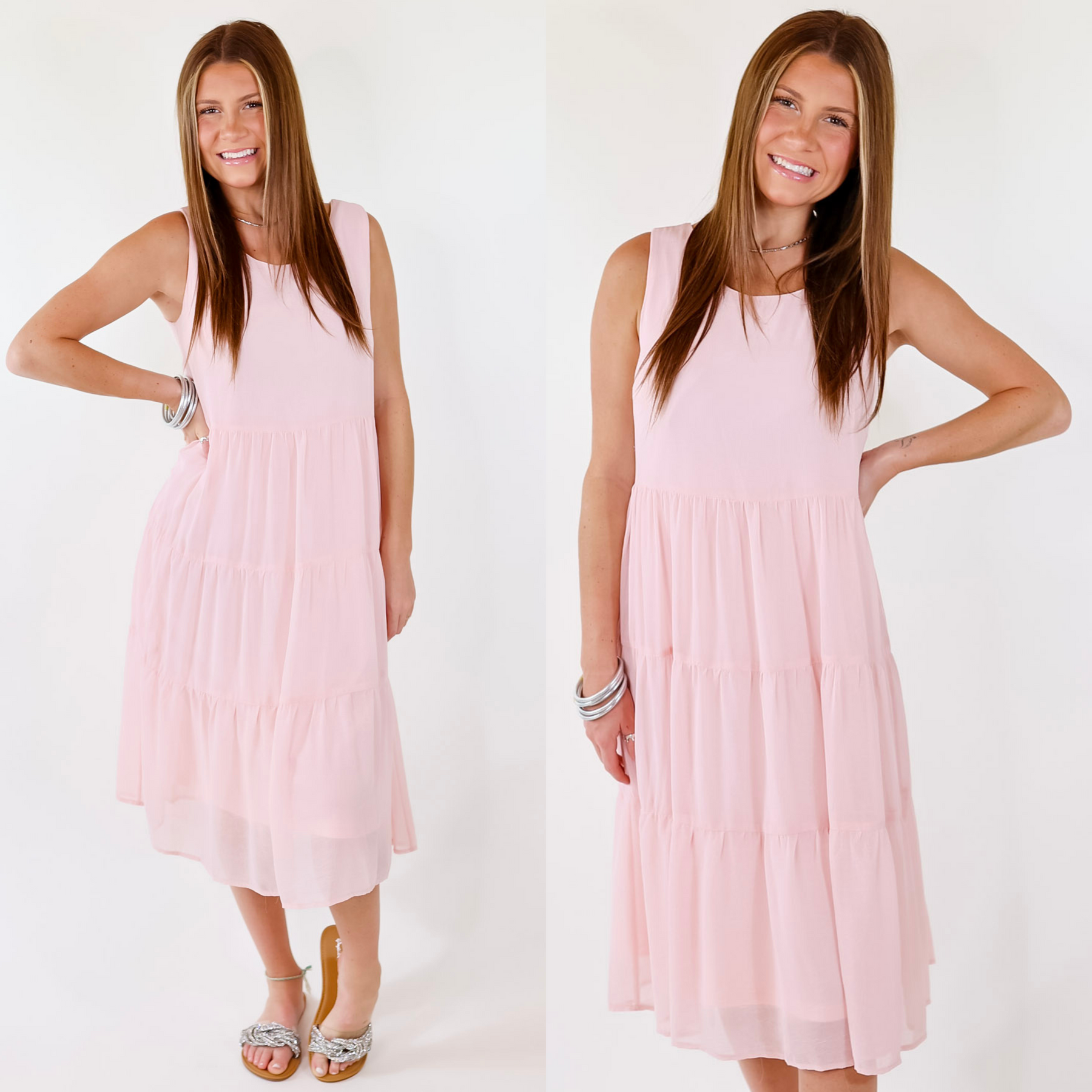 Mark My Words Tiered Tank Midi Dress in Blush Pink