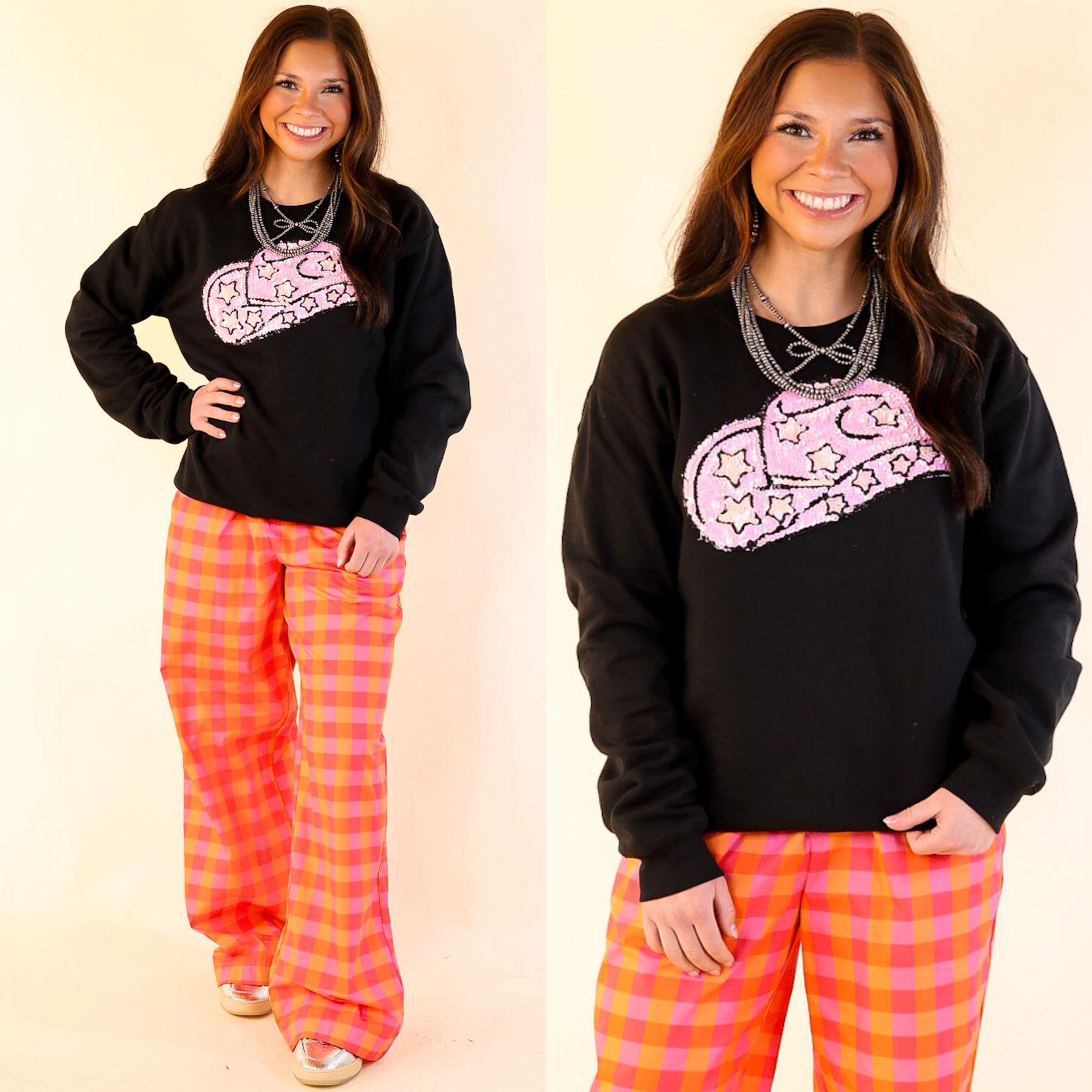 All Hat And Some Cowgirl Sequin Patch Graphic Sweatshirt in Black