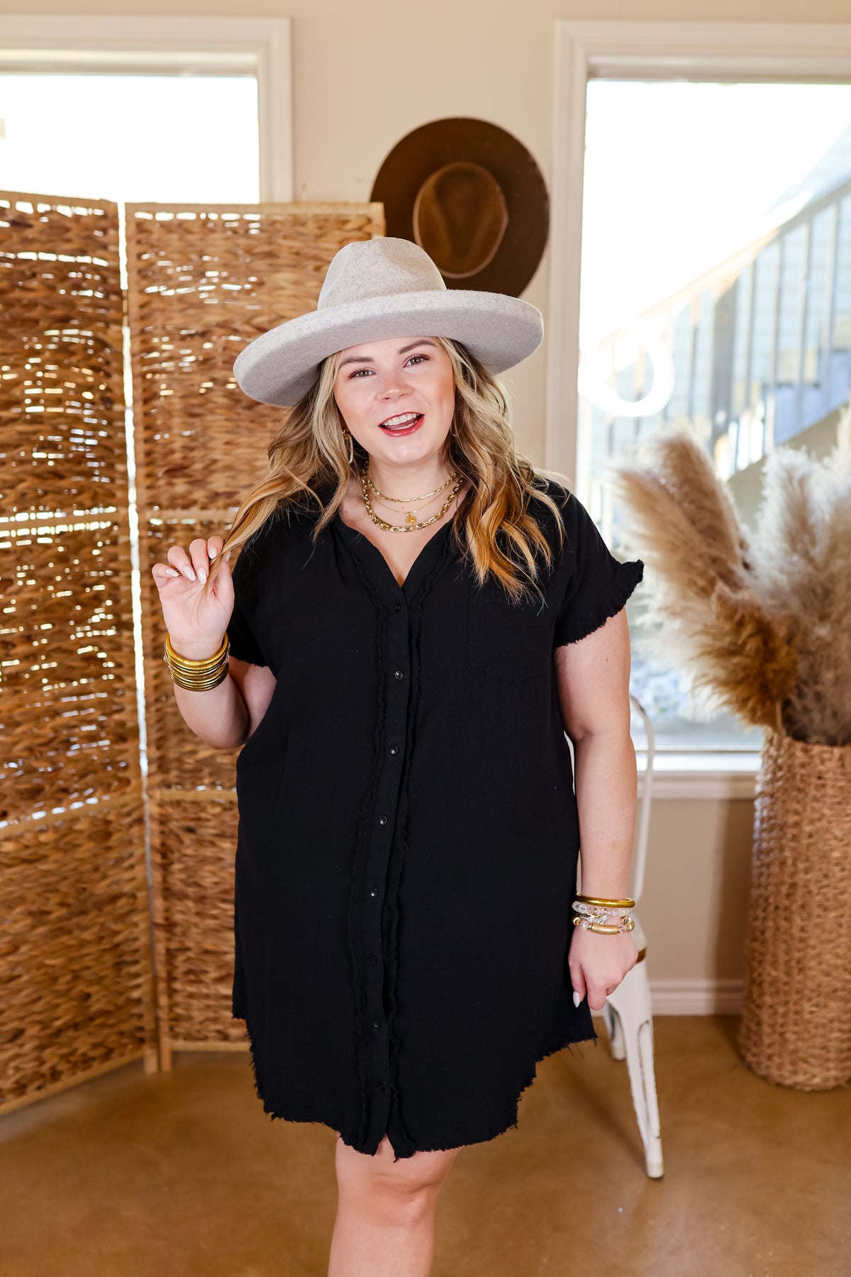 This adorable dress is the perfect piece for all occasions! It includes a button up front, a front pocket, a collared neck, and a soft material. Pair this with booties and a hat and you'll be ready for the season!