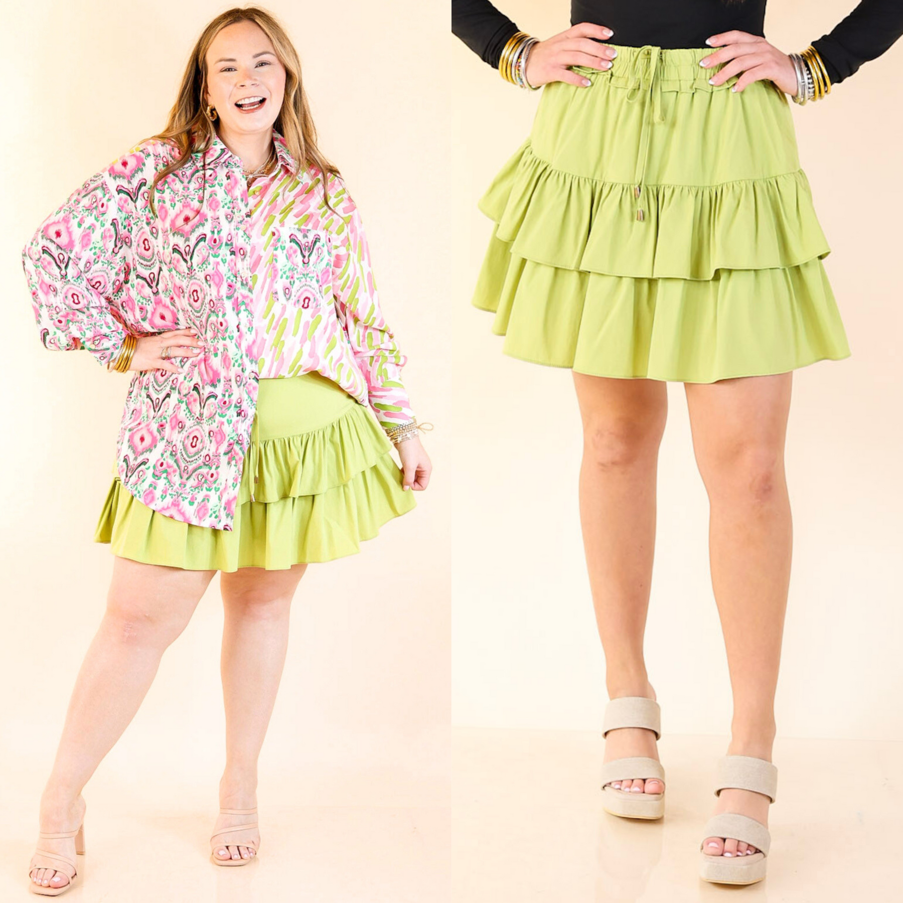 Vibrant Vibes Tiered Skort with Drawstring Waist in Green