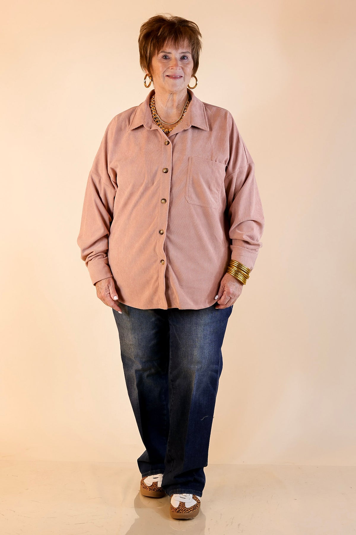 Captivating Cuteness Corduroy Button Up Shacket in Mauve Pink