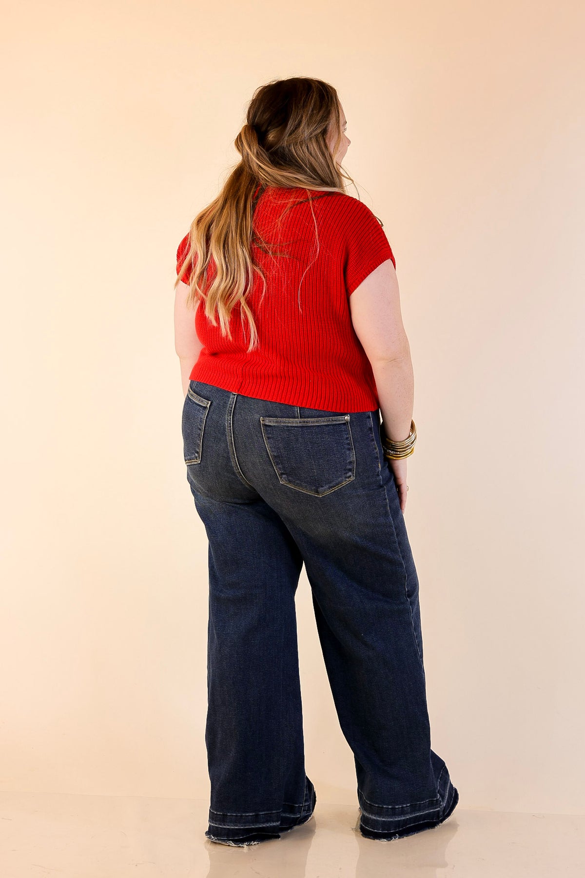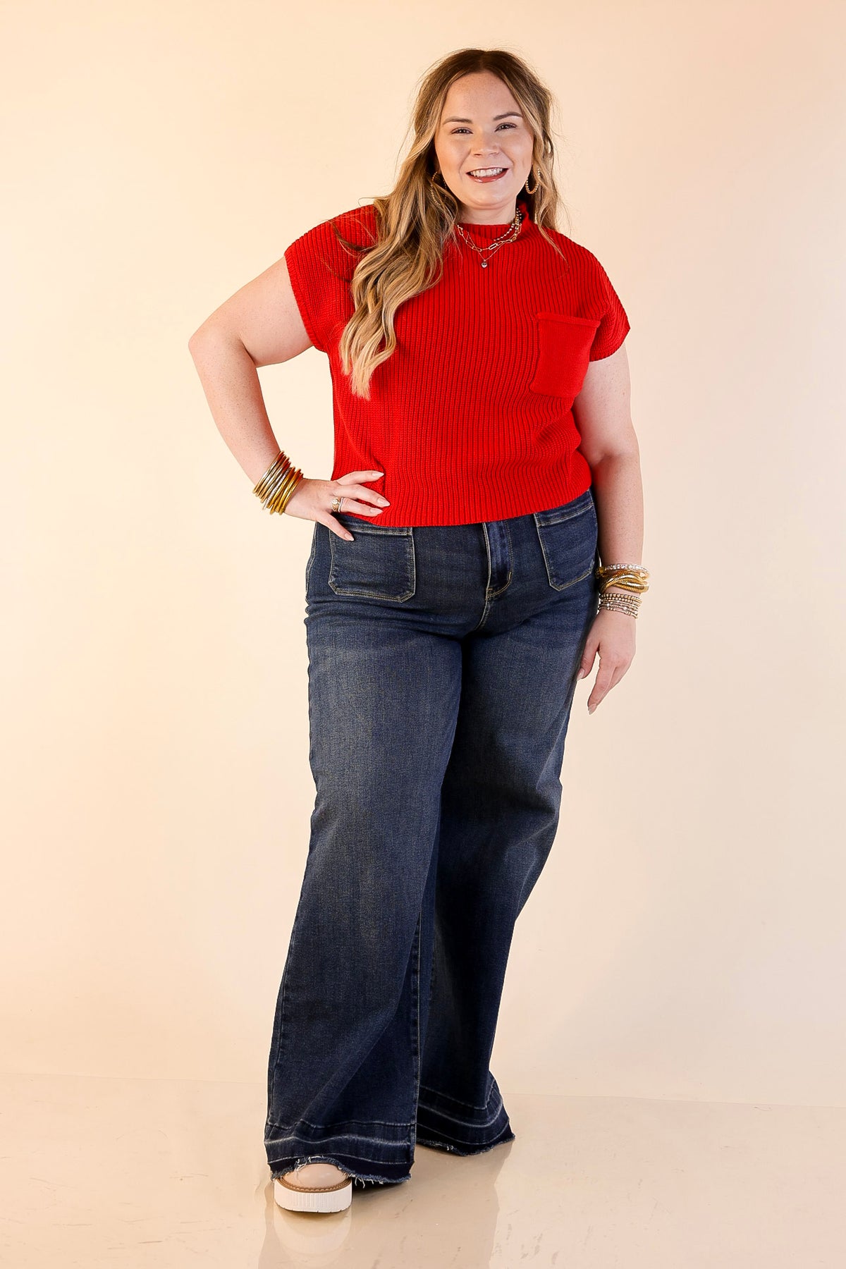 Repeat Worthy Cap Sleeve Cropped Sweater with Front Pocket in Red