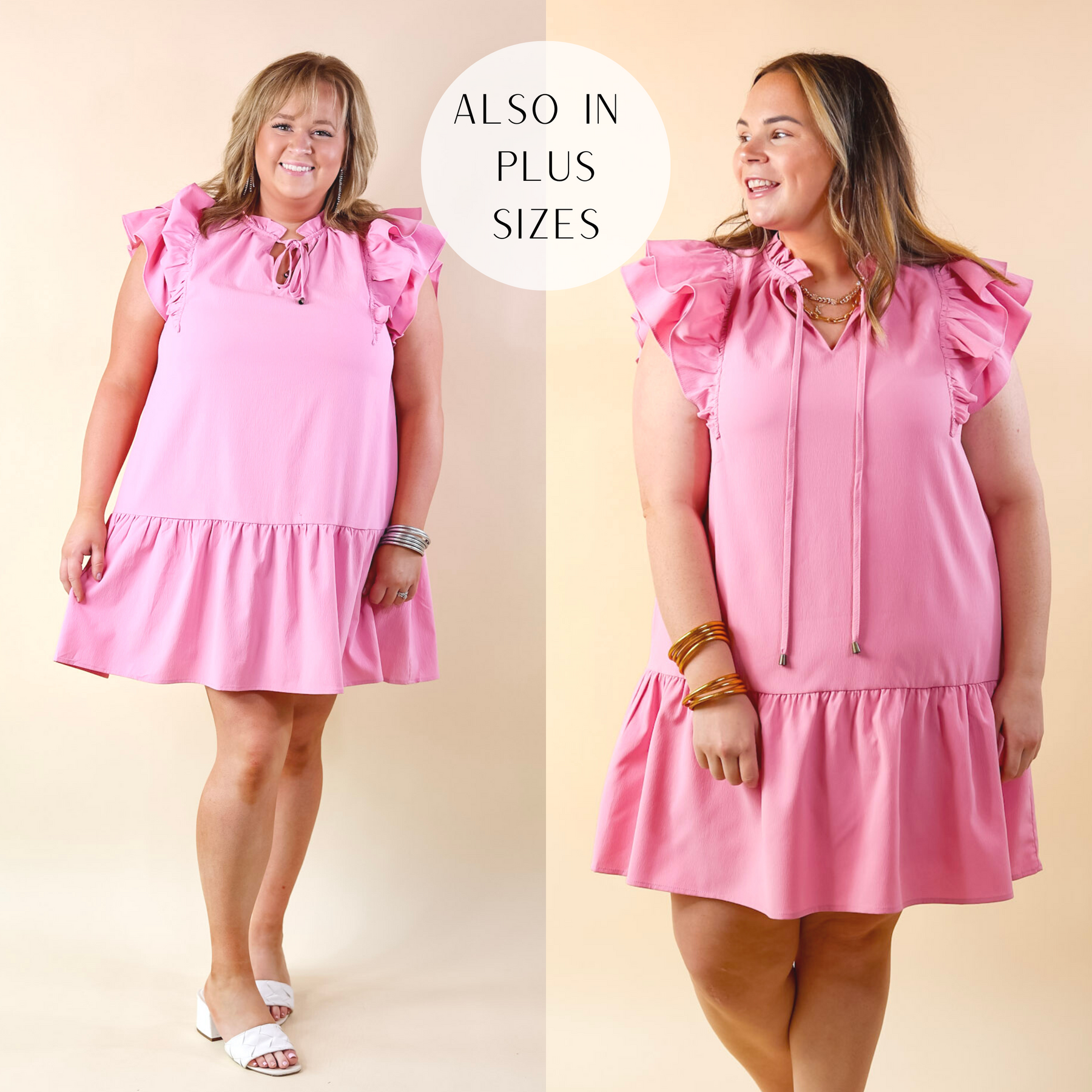 Powerful Love Ruffle Cap Sleeve Dress with Keyhole and Tie Neckline in Light Pink