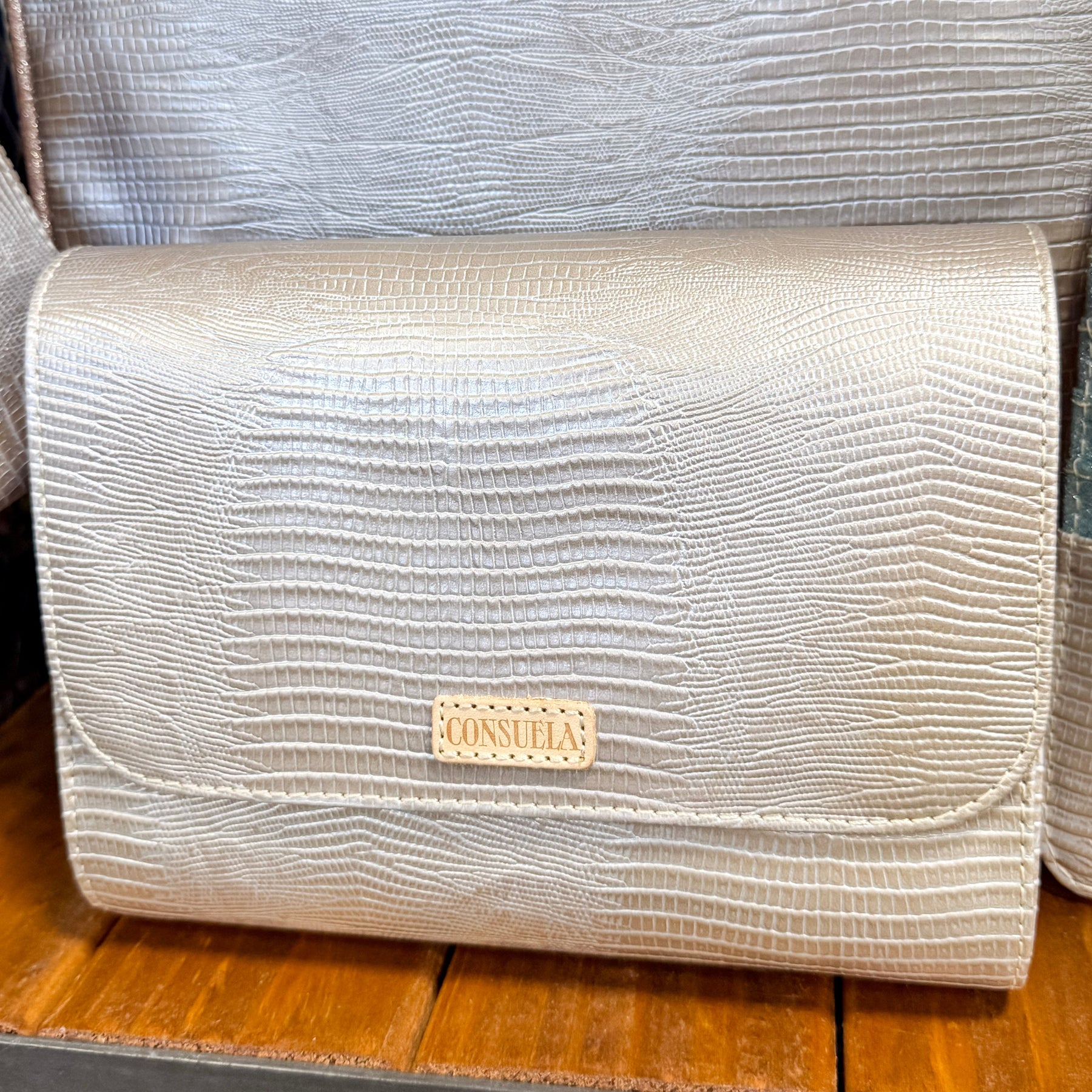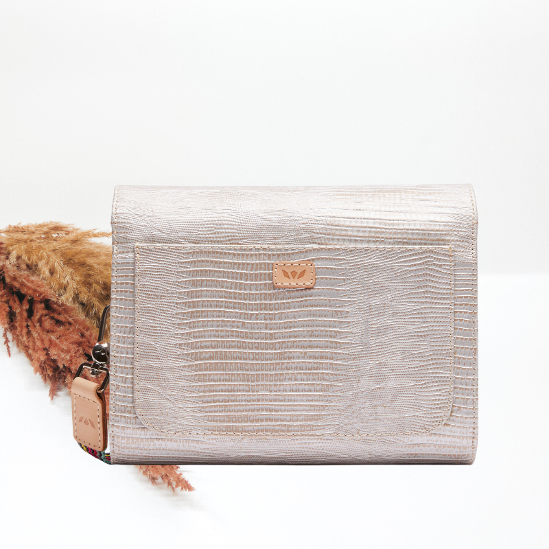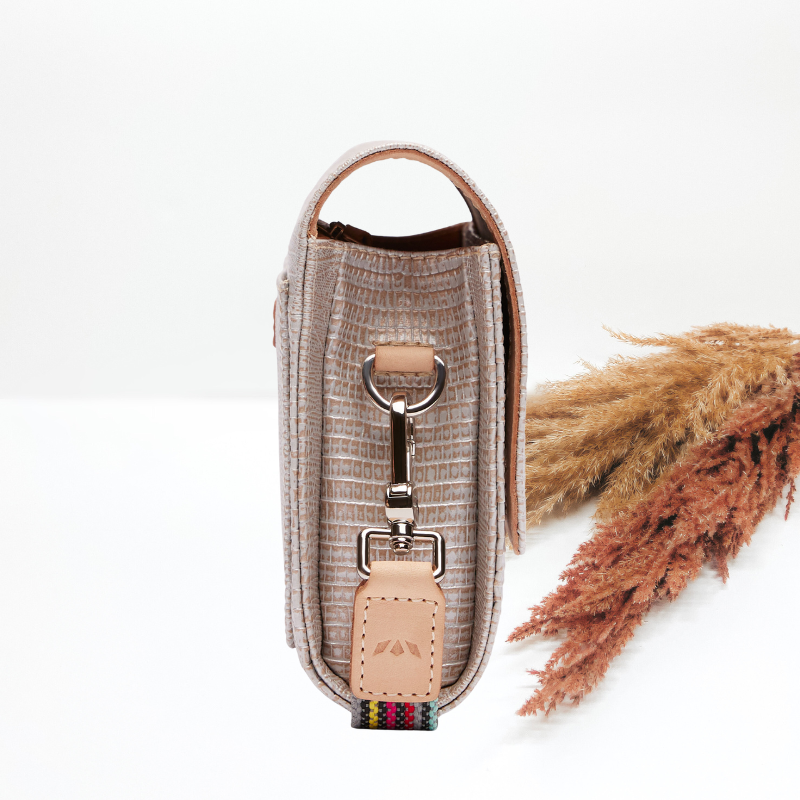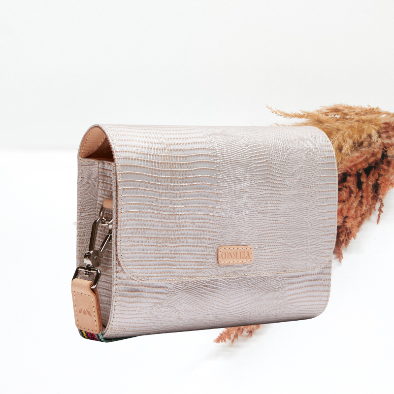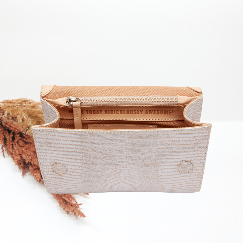 The iconic animal stripe in electric hues, embroidered on brushed silver-tone reptile. The little sister to the In Town, this mini messenger bag is tiny but mighty. Featuring an interior zipper pocket and credit card pocket, this leather crossbody can hold just what you need while staying organized. Secured shut with two powerful magnets, your belongings are safe and close at hand for a day (or night!) on the town.
