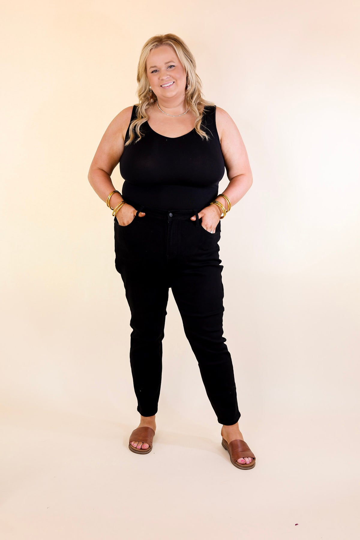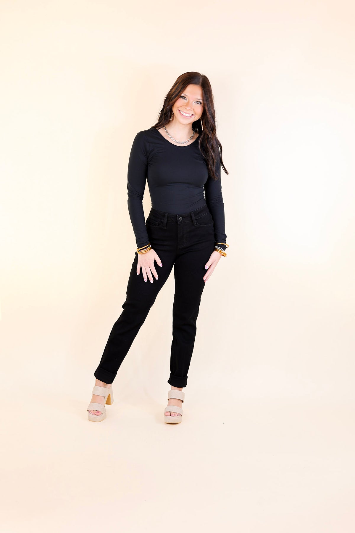 Slip into the Main Memories Slim Fit Jeans from Judy Blue and express yourself in the chicest way. These show-stopping black jeans feature a slim fit and cuffable hem, allowing you to mix up your style in unique ways. Make memories and show off your svelte figure in these high-impact pants!