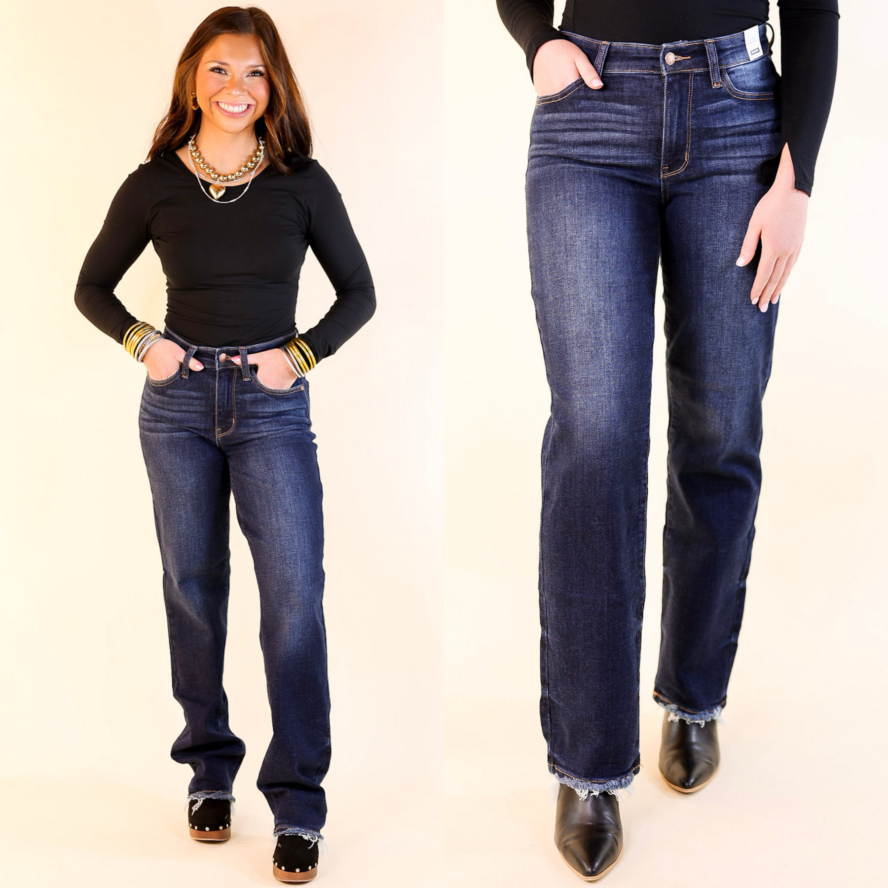 Judy Blue | Everyday Icon Straight Leg Jean with Frayed Hem in Dark Wash