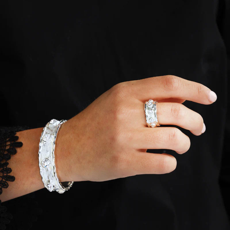 BuDhaGirl | Seven Crystal Cuff Bracelet in Silver