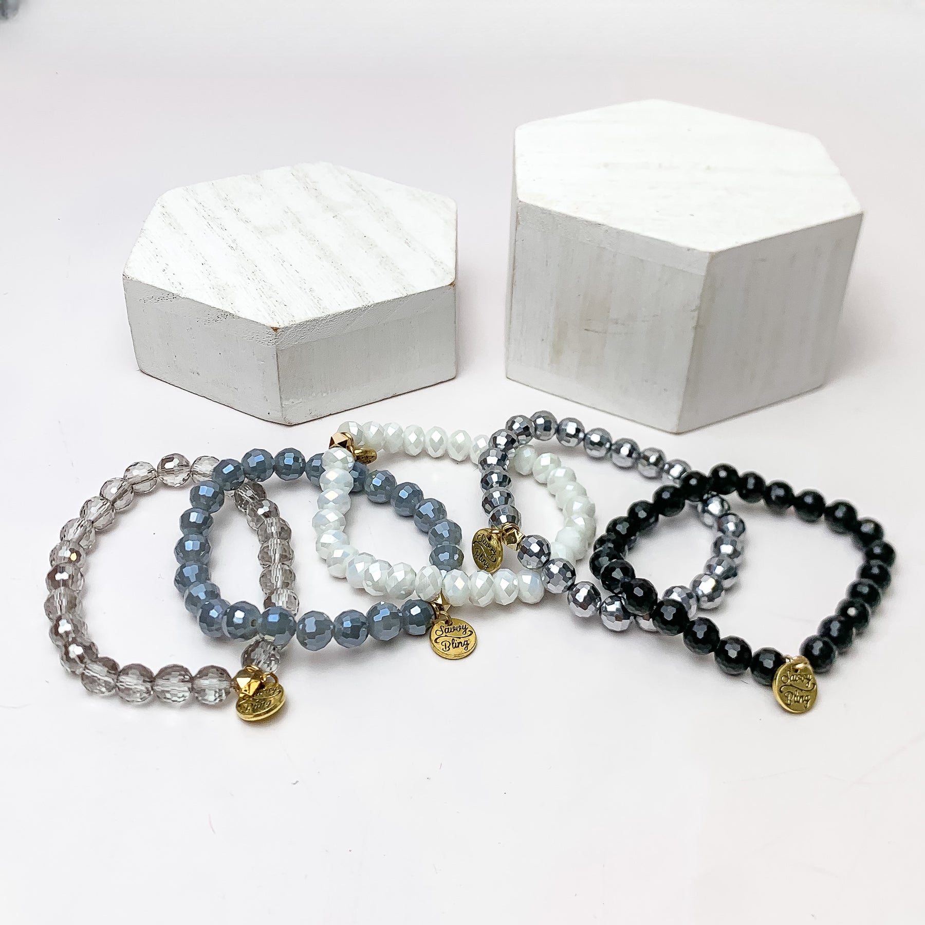 Set of Five | All Nighter Crystal Beaded Bracelet Set in Grey, Black, And White