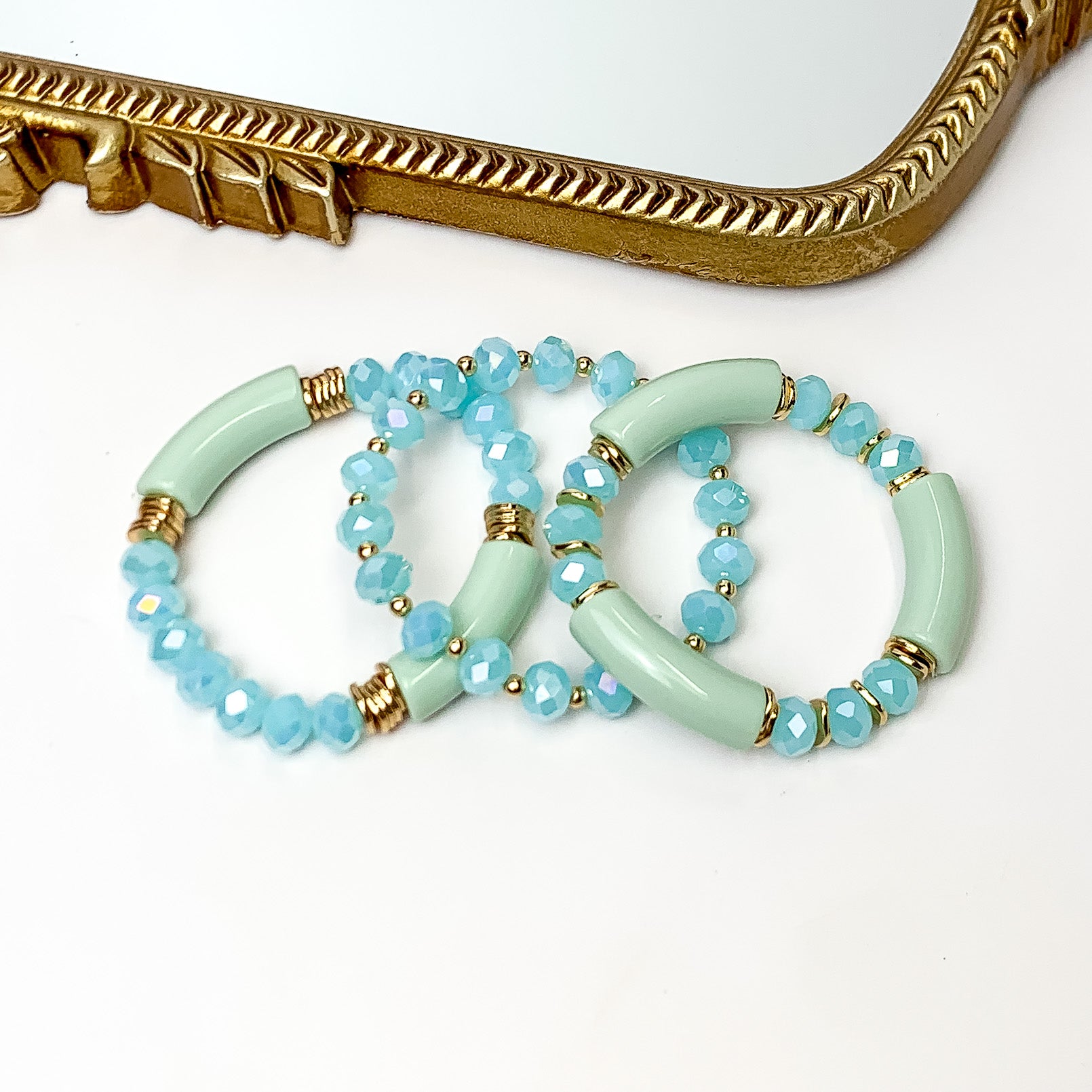 Set of Three | Sunny Bliss Crystal Beaded Bracelet Set in Light Blue