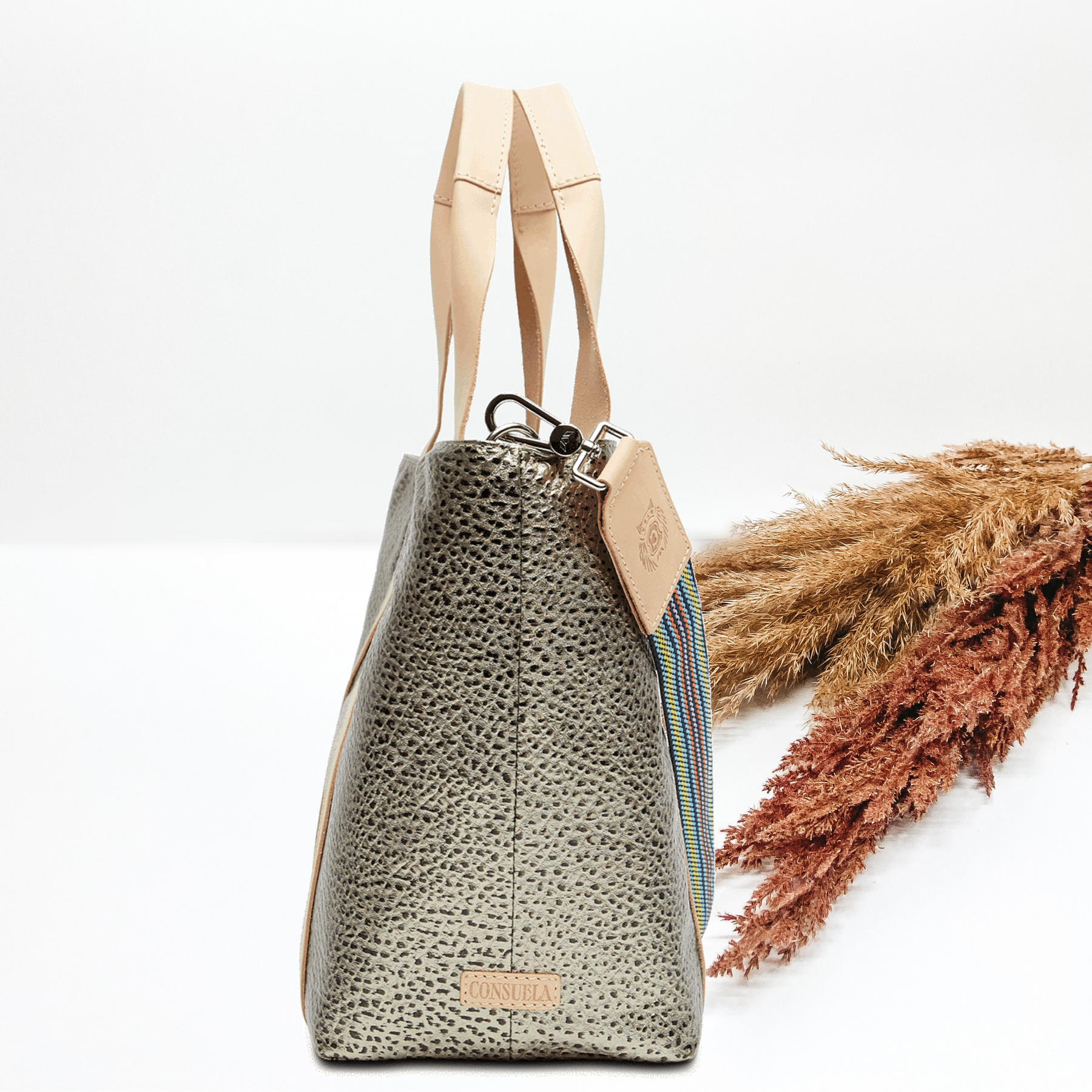 - -Natural leather handles and trim