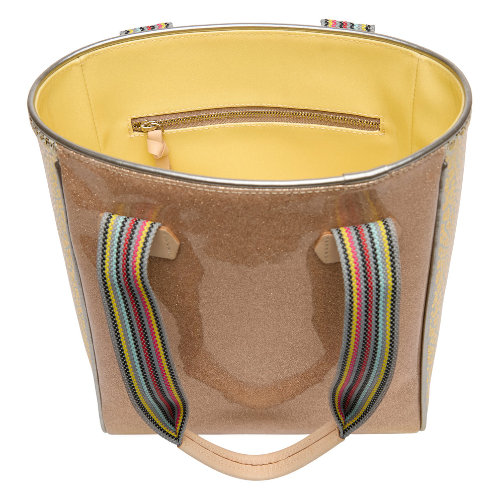 Our Chica Tote is the little sister to our Thelma Classic Tote. With a slim silhouette perfect for life-on-the-go, the Chica carries all you need with ease. Topped with comfortable woven handles, this multi-functional tote is trimmed in natural leather and crafted to hold its shape. Our tote features a roomy interior and pockets.