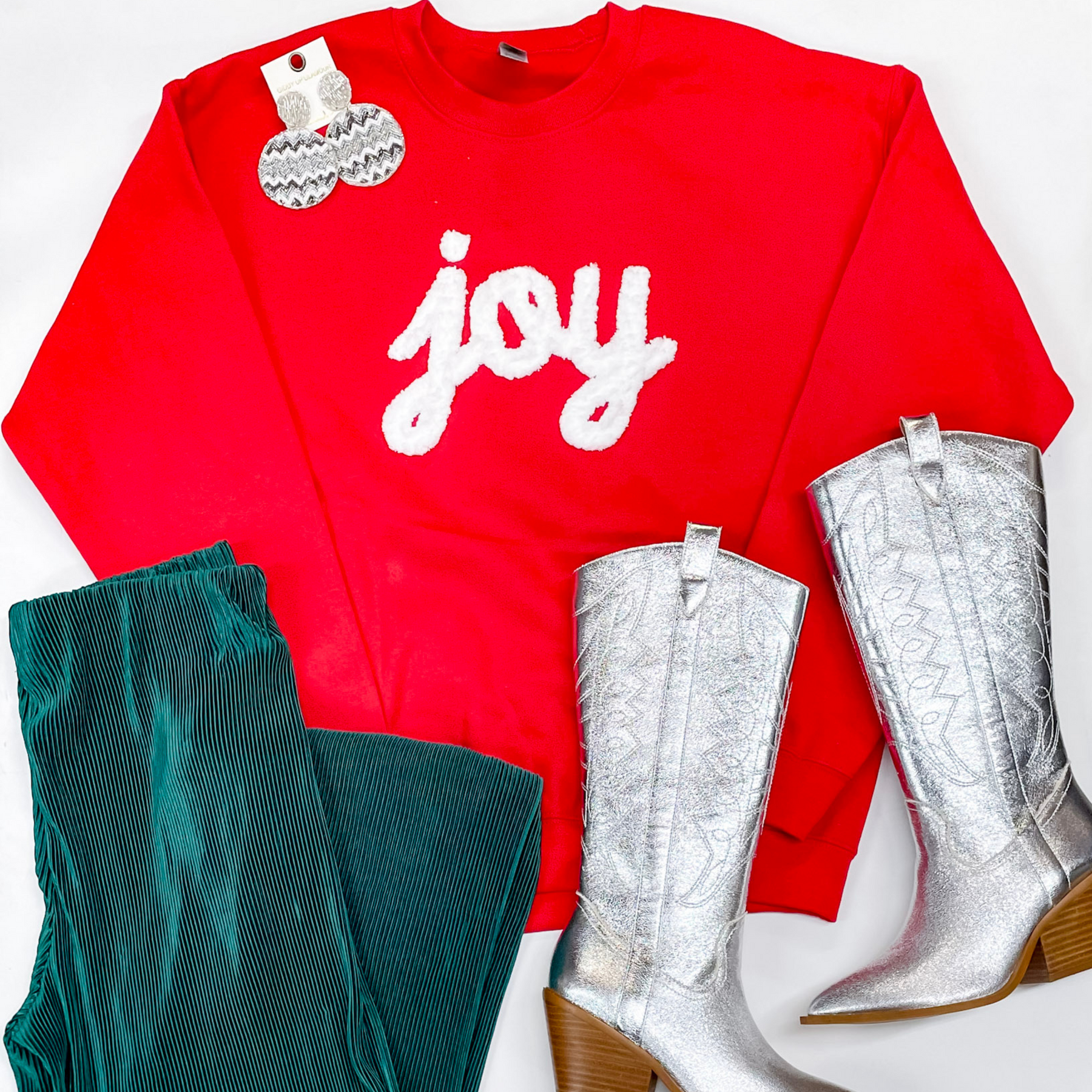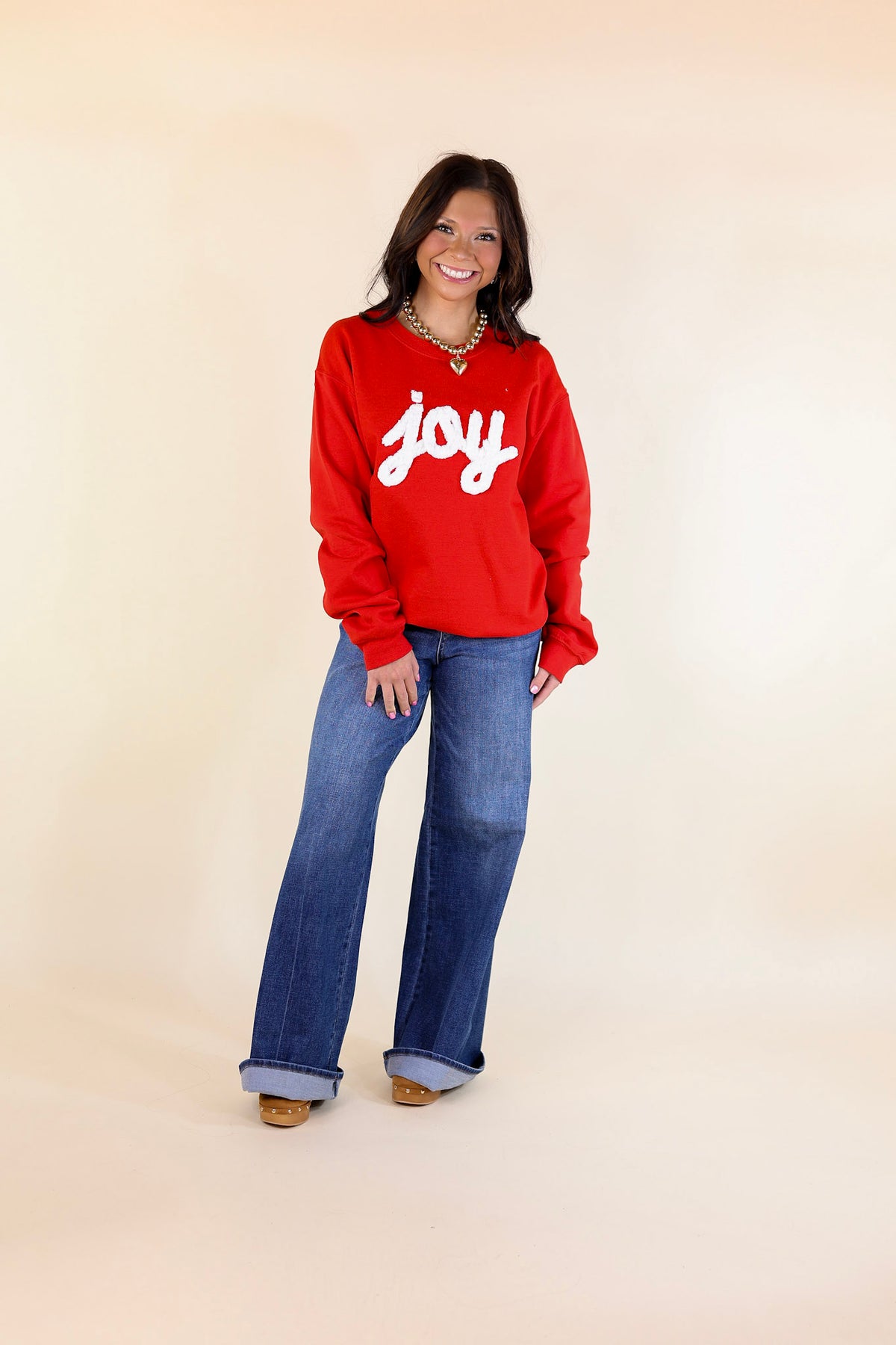 Joy Hand Stitched Christmas Graphic Sweatshirt in Red