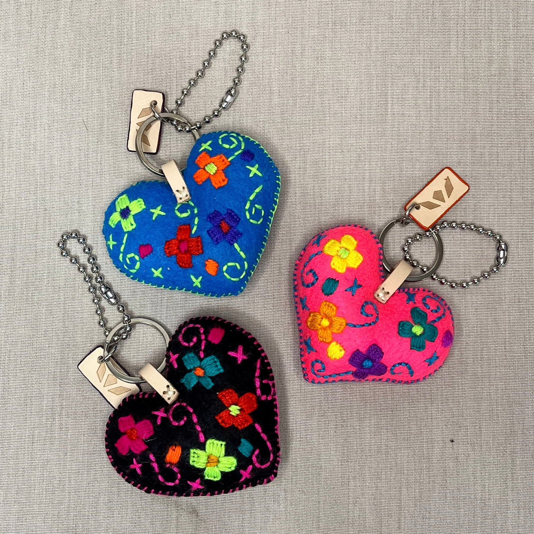 • Hand-embroidered floral on a felt heart