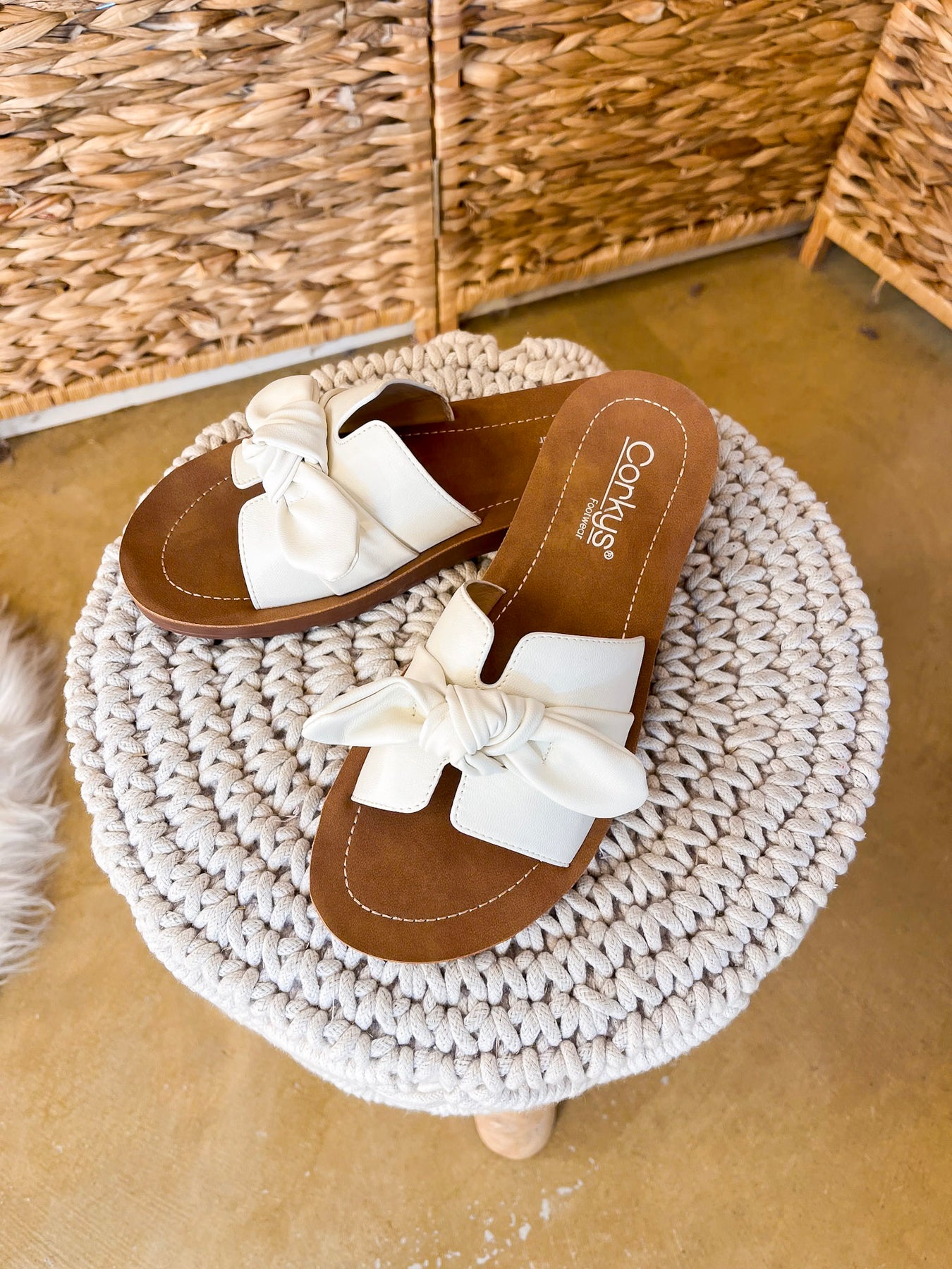 Corky's | Too Cute Bow Detail Flat Sandal in Ivory