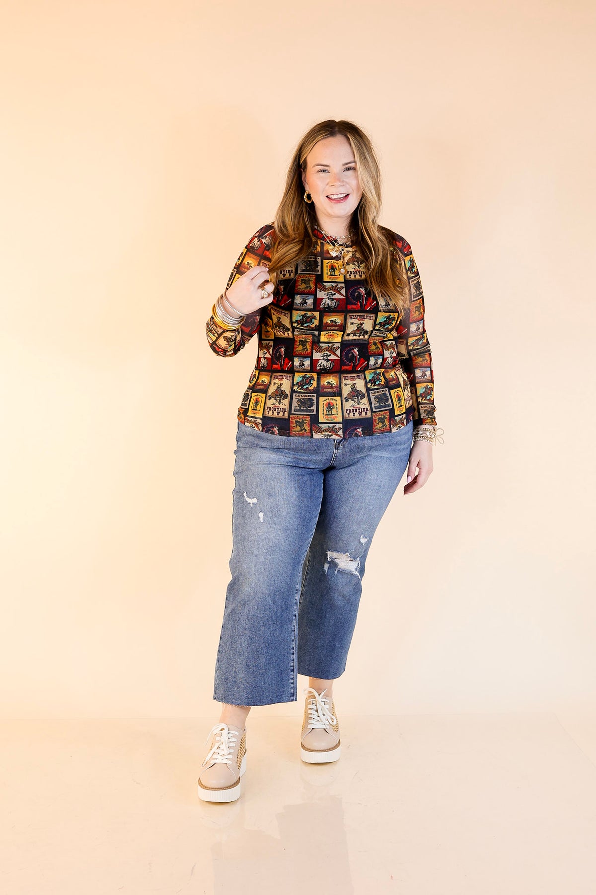 Your layering game just got an upgrade. The Light Layer top is a long sleeve, slightly sheer mesh style that’s lightweight, breathable, and built for bold outfit moments. Featuring a sleek mock neck and an allover collage of stamp-inspired prints, this top adds instant visual interest whether you wear it solo or layered under a graphic tee, vest, or denim jacket.