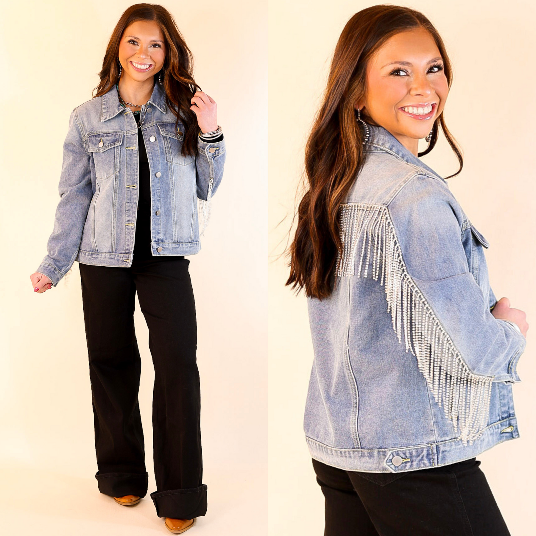 Rhinestone Cowgirl Crystal Fringe Denim Jacket in Medium Wash